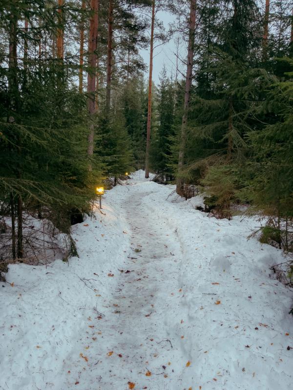 Medbring gode vandresko: Uanset om du udforsker skoven ved Oddis Öga eller går over den frosne sø, er solide sko et must.