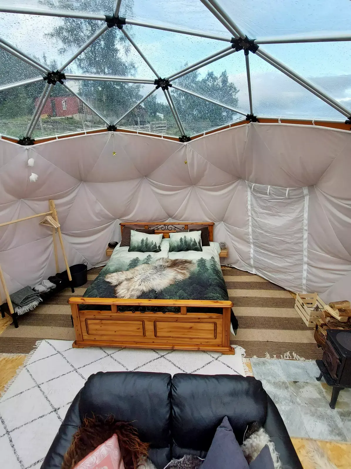 Wenn Sie in einer Kuppel übernachten, genießen Sie den Komfort eines Bettes – und fühlen sich dennoch der Natur nah! Die Kuppel befindet sich auf dem Bauernhof, in der Nähe des Haupthauses und der Weidefläche unserer Schafe. So kommen Sie bei Ihrem Aufenthalt bei uns sowohl den Tieren als auch dem Bauernhofleben ganz nah.