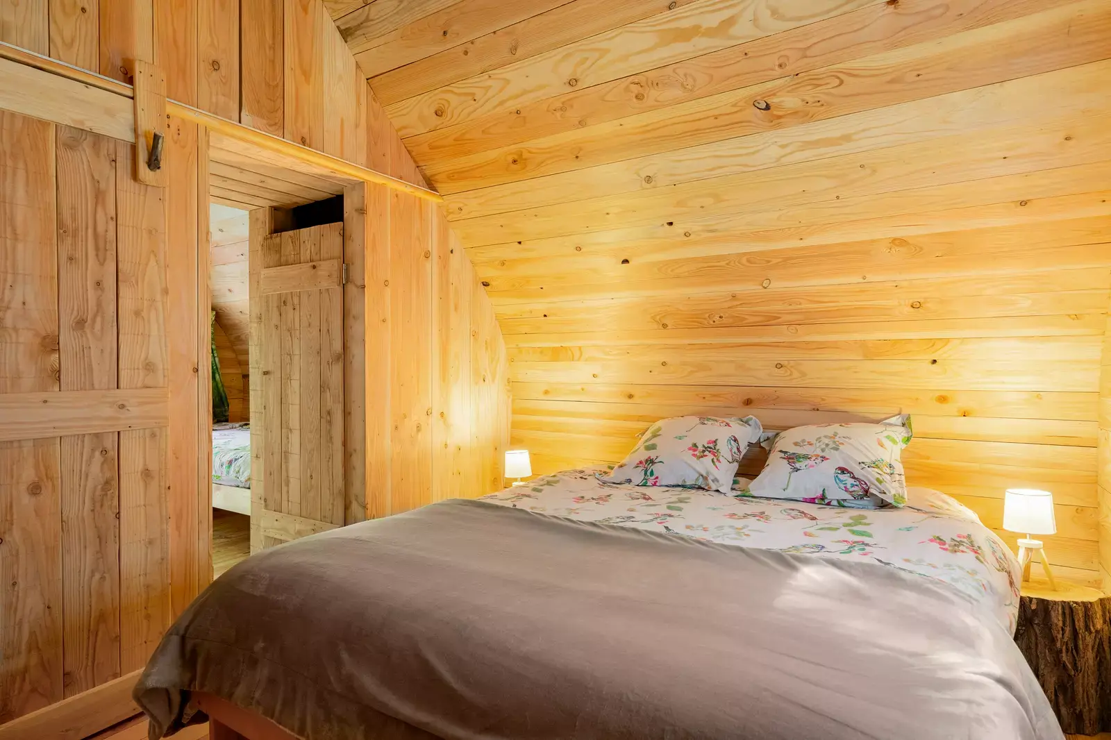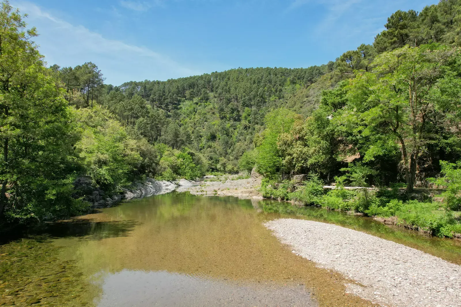 Vi tilbyder en hytte med sommerkøkken på terrassen og el: Vores seneste luksus Coutinelle og Comballe modeller på 17m² er placeret på Cévennes terrasser for mere privatliv og en klar udsigt over Luech floden. Et privat badeværelse giver dig mere komfort. Fire personer kan bo i denne usædvanlige bolig med privat soveværelse og barneseng i indgangen.