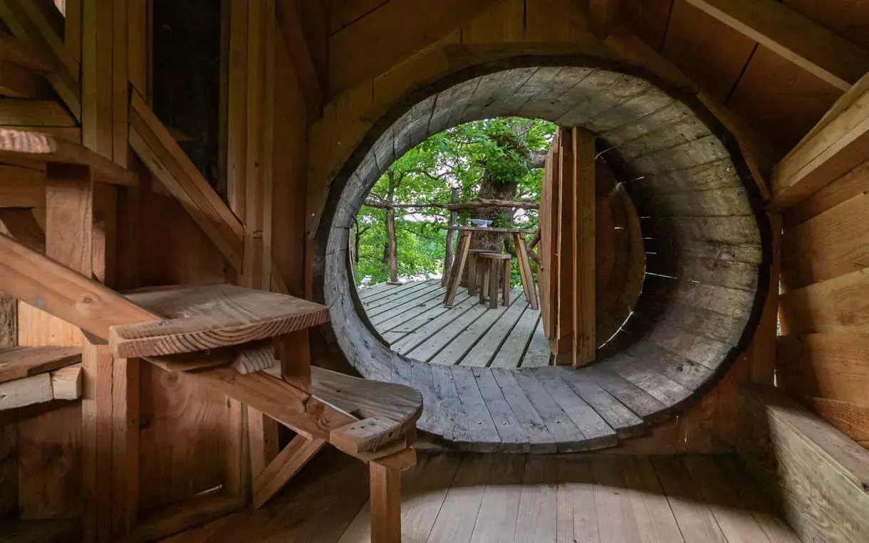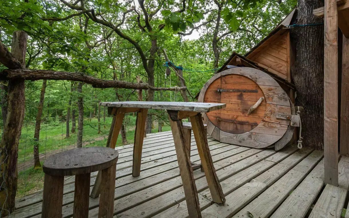 Mit navn kommer fra maori og betyder overflødighedshorn. Generøs og ligner den uendelige bevægelse af bølgerne i Polynesien. En trappe fører dig op til mig, snor sig rundt om mit træ. Jeg er glad for at byde 2 nisser og feer velkommen til min magiske og unikke hule. Min terrasse vil tilbyde dig udsigt til månen, andre trapper fører dig til en seng for at falde i søvn tættere på den. Jeg er udstyret med tørre toiletter, et badeværelse står til din rådighed lidt længere med brusere, toiletter og håndvaske. Jeg bliver oplyst af en solcellelampe. Uden elfe råder jeg dig til at medbringe din opladede mobiltelefon og en lommelygte. Mine senge er dækket af dyner og puder. Tak fordi du medbringer dine lagner og håndklæder. Ellers kan du leje lagnerne (ved reservation: 6 euro for en dobbeltseng). Min seng er 140 x 190 centimeter. Jeg har et bord og stole på den højtliggende terrasse. Jeg er ikke isoleret, men elektriske varmeflasker vil varme dig op om vinteren. Jeg kan rumme 2 personer i en dobbeltseng. Jeg sidder 7 meter over jorden. Jeg har en mezzanin og en udendørs terrasse. Jeg byder børn velkommen fra 01 dag. Jeg modtager dig fra marts til december. Jeg er hverken isoleret eller opvarmet. Jeg tændes med en solcellelampe. Jeg er klar til at byde dig velkommen fra kl. Vi siger farvel og ses inden kl. 11.00.