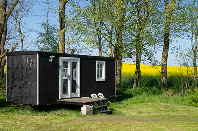 Overnatning på naturskønne Mols - med havet tæt ved. På en grøn plet mellem nøddetræer og bærbuske, omringet af marker og med Begtrup Vig i gåafstand, ligger tre vogne indrettet til at give vores gæster en god overnatning i naturen. Vognene er indrettet med borde, stole, hylder med service og knager. Den ene vogn har en stor dobbeltseng, imens der i de to andre er plads til en lille familie, der kan fordele sig i en køjeseng og en dobbeltseng. Sengetøj og håndklæder er inkluderet i bookingen. En fjerde vogn byder på to toiletter og et bad. Nyd solen på den lille terrasse eller lav mad over bålet. Måske er i heldige at få besøg af det lokale fasanpar eller ænderne fra den nærliggende gård. Nøddehaven ligger som en del af produktionsfællesskabet Mols Food, der dyrker økologiske grønsager. I gårdens vejbod kan du finde sæsonaktuelt grønt og honning. I cykelafstand findes yderligere supermarkeder, og foran toilet-og badevognen står en vask, som kan bruges til forberedning af madvarer.