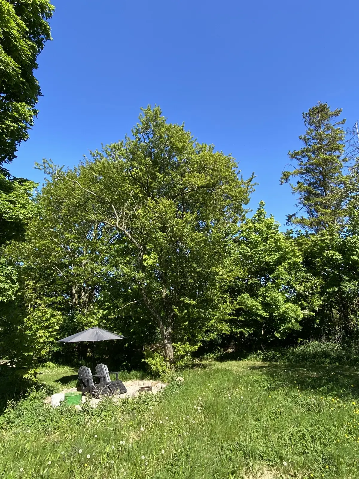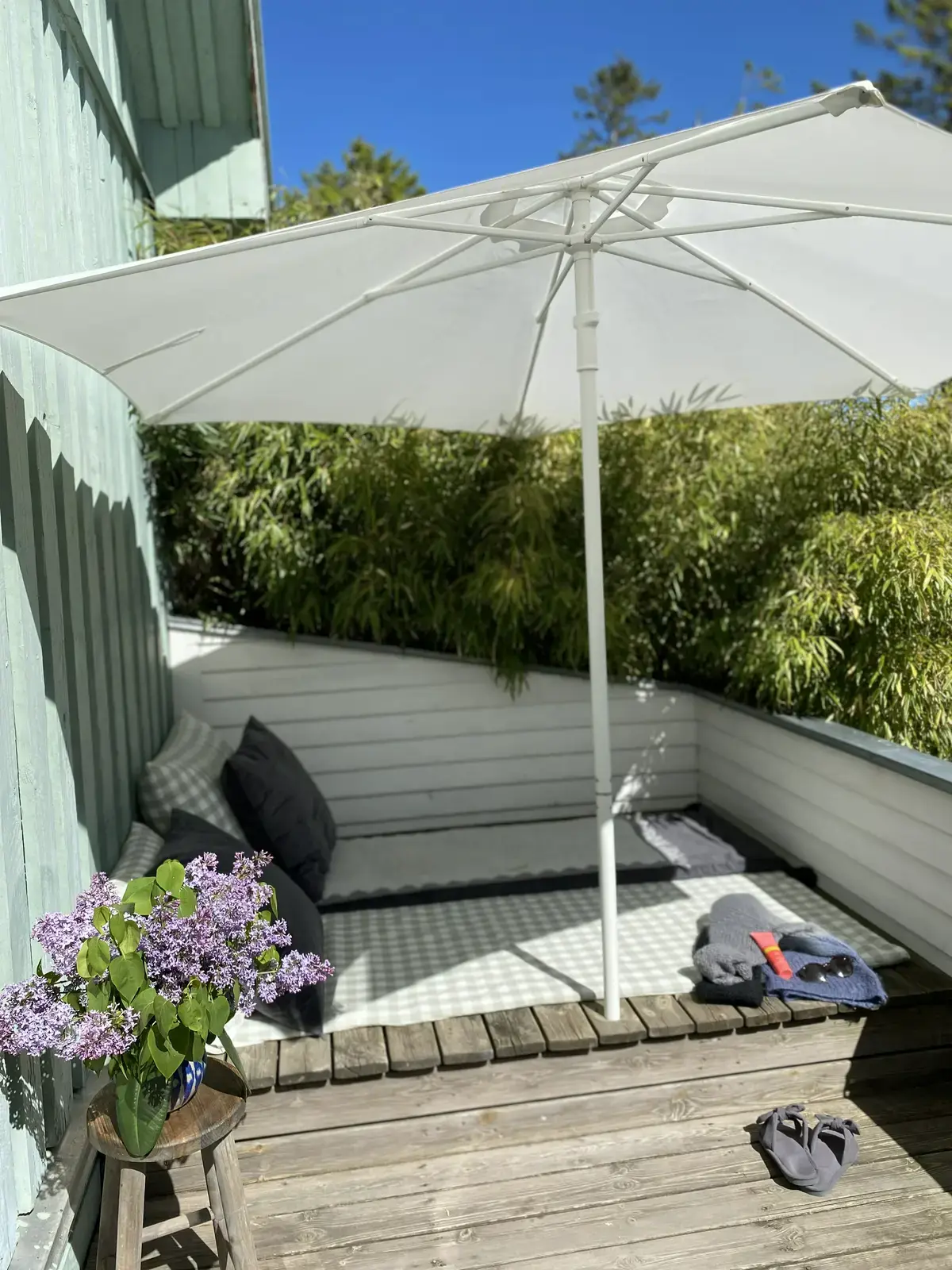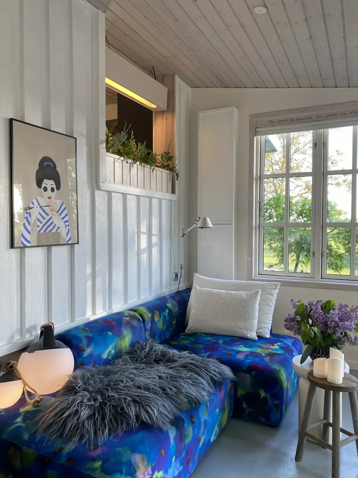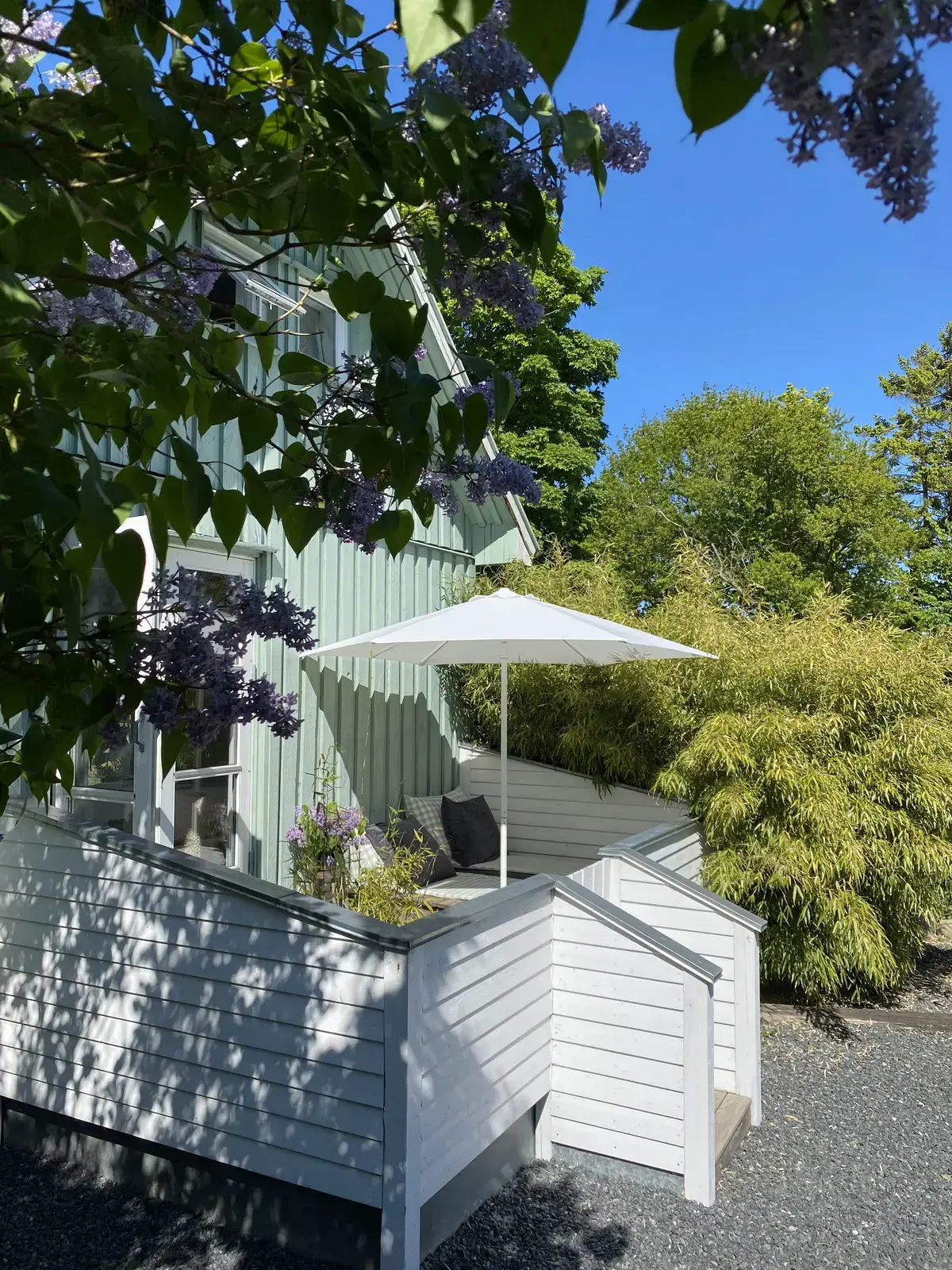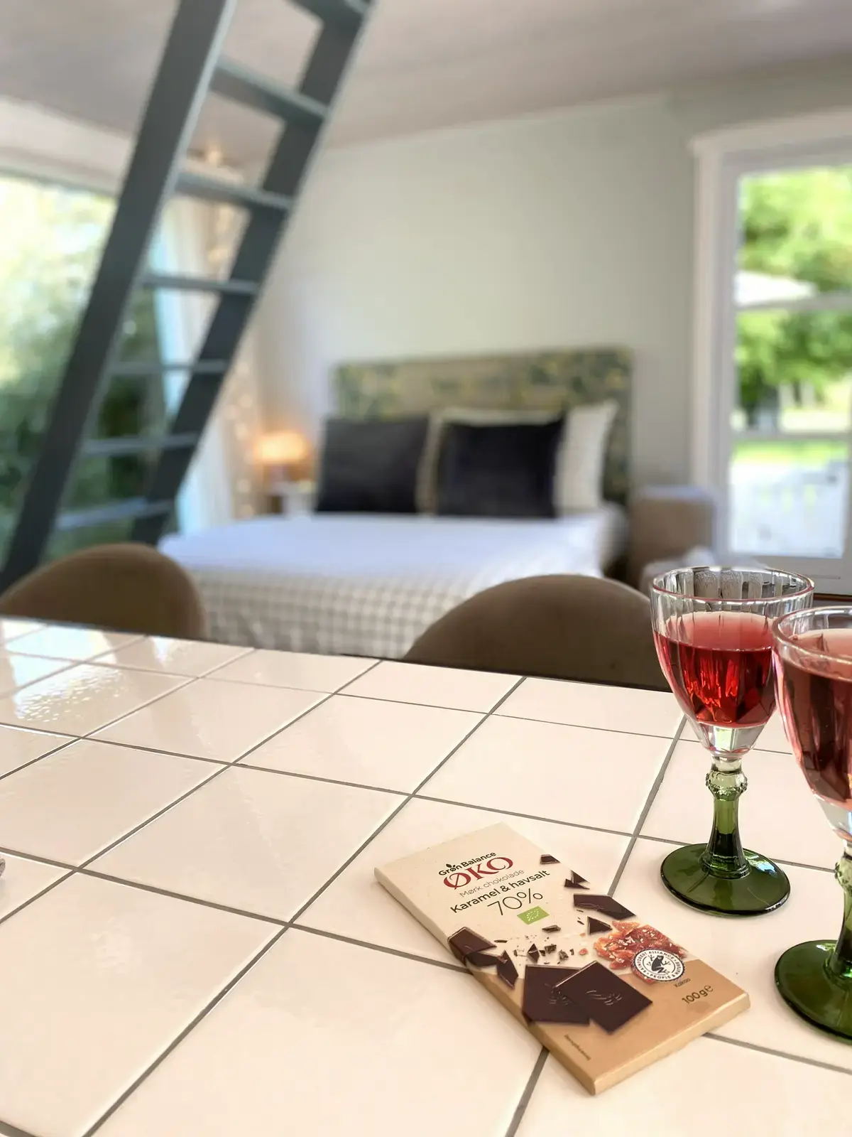 Her er en kreativ perle med masser af detaljer. Brændefyret udebad på 600l med plads til 2 personer. Hyggelig bålplads, med udsigt til hytten, haven. Her emmer af grønne omgivelser, himmel og horisont. Dejlig dobbeltseng på 160x200cm med udsigt gennem dejlig stort vinduesparti. Der vil stå morgenmad klar i køleskabet, som består af 2 surdejsboller med smør, ost og syltetøj til .. skyr el. yoghurt med drys .. 2 æg der skal koges og 2 x appelsinjuice. Der er isterninger i fryseren 🧊🍸☀️💚