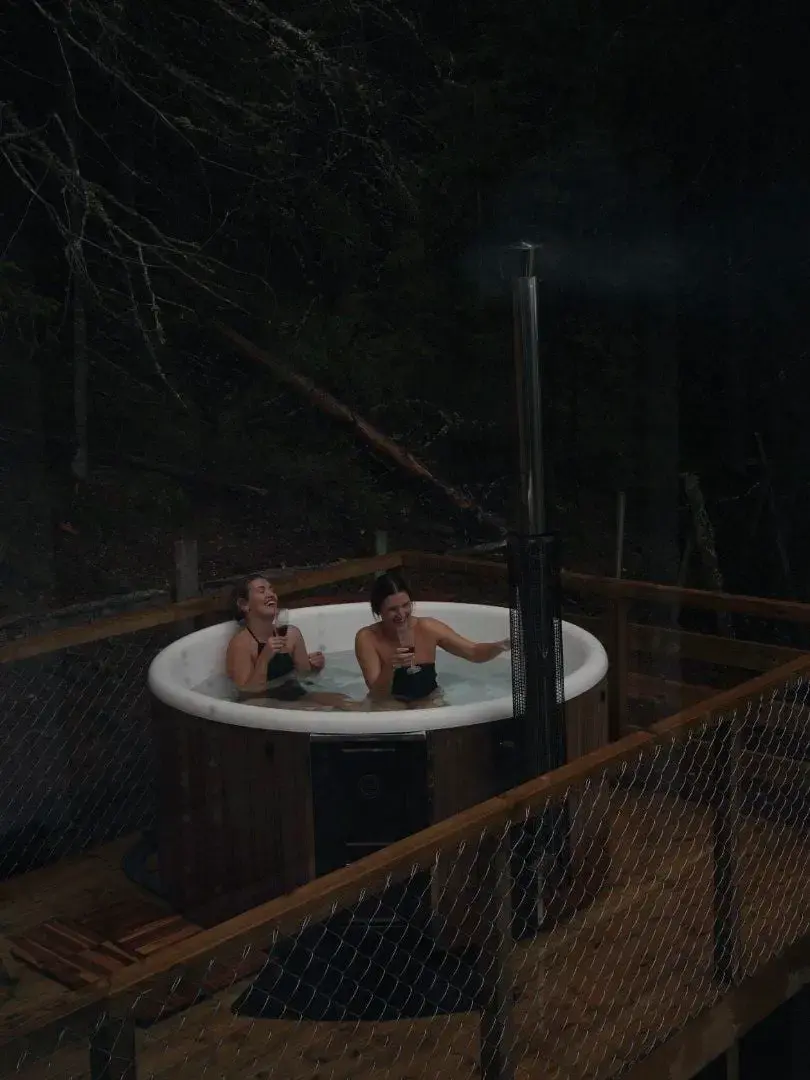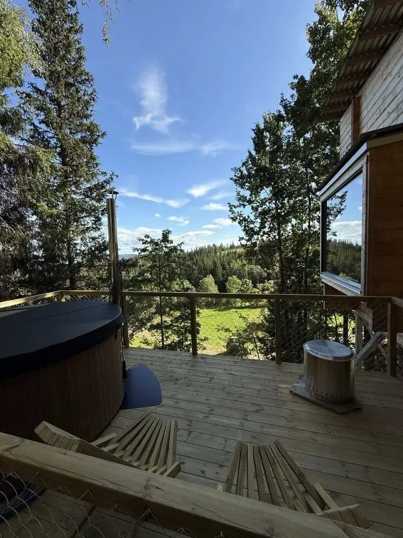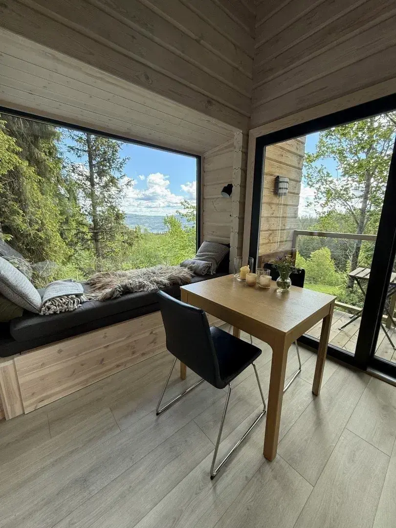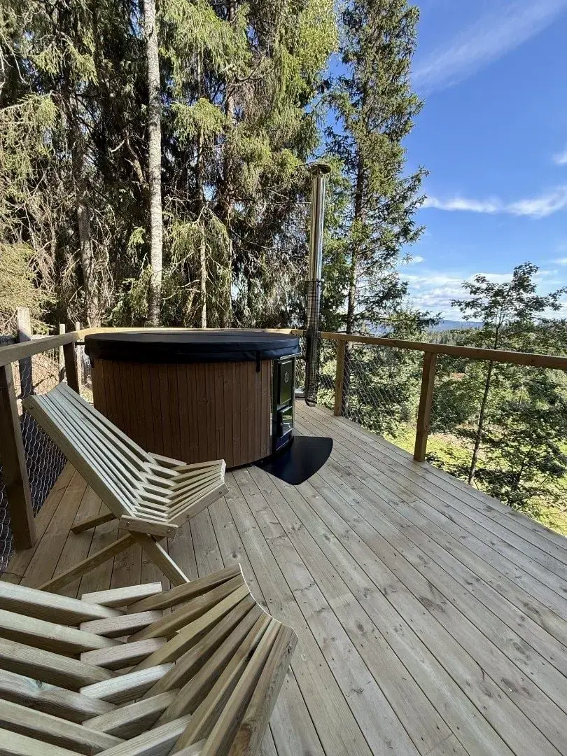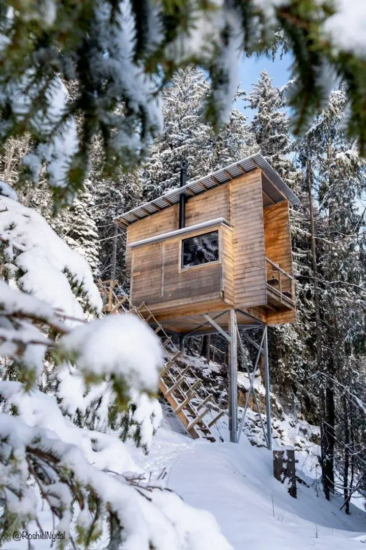 "SIKKE et sted! Perfekt til en dag med total afslapning og lavt humør. Trætophytten var hyggelig og veludstyret. Vi havde en FANTASTISK tid!" "Sikke en fantastisk oplevelse! Jeg har været i flere trætophytter før, og jeg må sige, at denne var 10/10! Smukke omgivelser og en virkelig god hytte, der har alle de faciliteter, man har brug for." (Google anmeldelser) Denne trætophytte har plads til fire personer. Hytten har et badeværelse med varmekabler, bruser og toilet. Stuen indeholder et fuldt udstyret køkken med køleskab, komfur og brændeovn. Der er også et spisebord og en bænk, der kan trækkes ud til en dobbeltseng. Der er plads til fire personer på verandaen. Perfekt til at nyde sin morgenkaffe. Fra parkeringspladsen er der ca. 300 meter at gå til hytten. De første 200 meter er op ad en grusvej, før man går de sidste 100 meter over jorden. Om vinteren er det muligt at stå på ski, vandre på snesko eller til fods. Nyd den smukke natur, mærk den friske luft, og mærk den gode følelse af at træde ind i den unikke trætophytte Knausen. Snesko til lån hænger uden for hytten. Hvis du ønsker at låne snesko fra parkeringspladsen, skal antal og køn/størrelse angives i bestillingen eller sendes via e-mail.