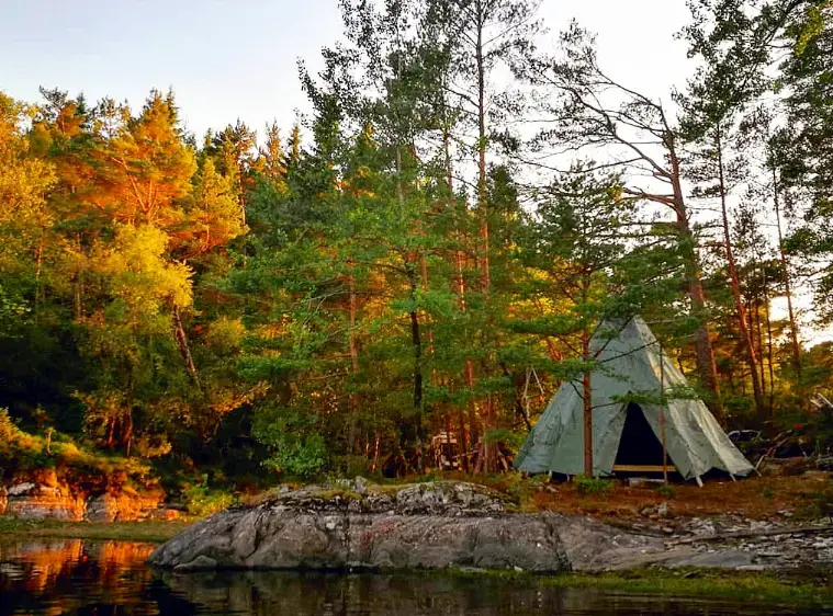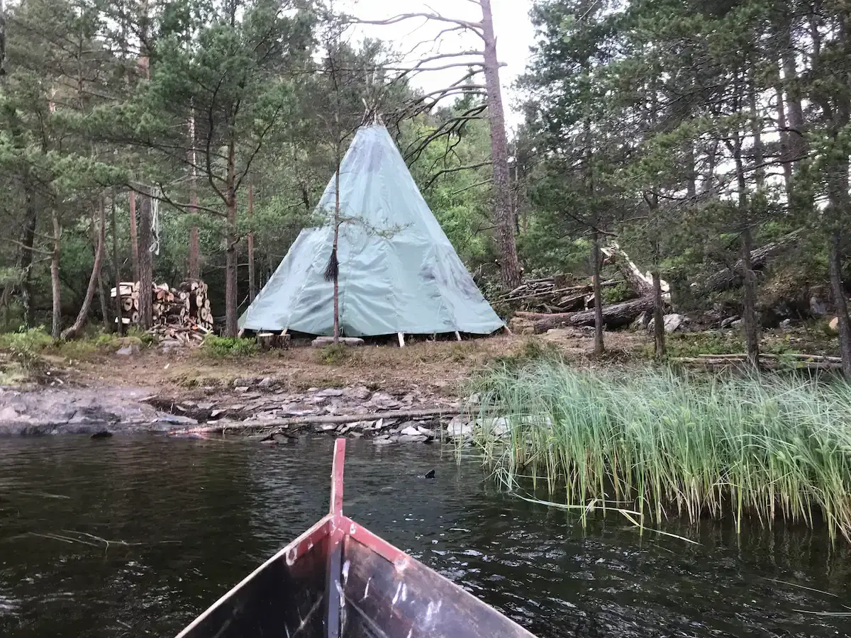 Flygt fra byen og tag til din egen øde ø! Prøv det primitive og enkle liv! Udforsk vildmarken, den bevarede, oprindelige skov og søen! Nyd stille dage og nætter, fisk, pluk svampe, bær og lav din egen mad på brændeovnen eller på bålet. Lav dit eget brænde og dyrk bushcraft. Vær alene i vildmarken (selvom det ikke er så langt væk fra gården). Det er sat til et eventyr! Du lejer hele holmen og den store tipi. En robåd og redningsveste er inkluderet i hele opholdet. Tipien er stor og har flere enkle senge/madrasser, et gaskomfur og en brændeovn til opvarmning og madlavning. Tipien indeholder stort set alt, hvad du behøver til et eventyr og til at "overleve" i vildmarken. Søen er drikkevand, så du kan drikke vandet. Bare du skal ikke gøre rent og hente drikkevand fra samme sted. Toilettet er et væltet træ med en komposttoiletkasse bagved. Bare så du ved det! Det er simpelt, men ikke noget problem at bruge. Dette er en vildmarksoplevelse! Dette skal du medbringe: vandtætte sko, varmt tøj, gas, stearinlys, lejrlygte, tændstikker, toiletpapir, soveposer og mad. Hvis du ikke har soveposer, kan du leje en og et "inderlagen" fra gården. Du kan også leje fiskegrej. Som en ekstra ting at gøre kan du leje en værktøjskasse med værktøj til træbearbejdning. Hvis du skal leje noget, skal jeg vide det, inden du ankommer. Før du forlader tipien, skal du sørge for, at den er ren og ryddelig, og vigtigst af alt skal alle tekstiler hænges op! Den er delvist udendørs, så det kan være fugtigt til tider, og små dyr kan komme ind, derfor. Det er også meget vigtigt, at du lukker den ordentligt og låser den på samme måde, som den var. Hvis du bliver i mere end 1 nat, vil der være 20% rabat for de følgende nætter! Rabatten vil automatisk blive tilføjet til bookingen. Vigtigt at vide: I Norge er det ikke tilladt at fælde levende træer i naturen. Levende træer må ikke beskadiges. Vær venlig og respektfuld over for naturen!