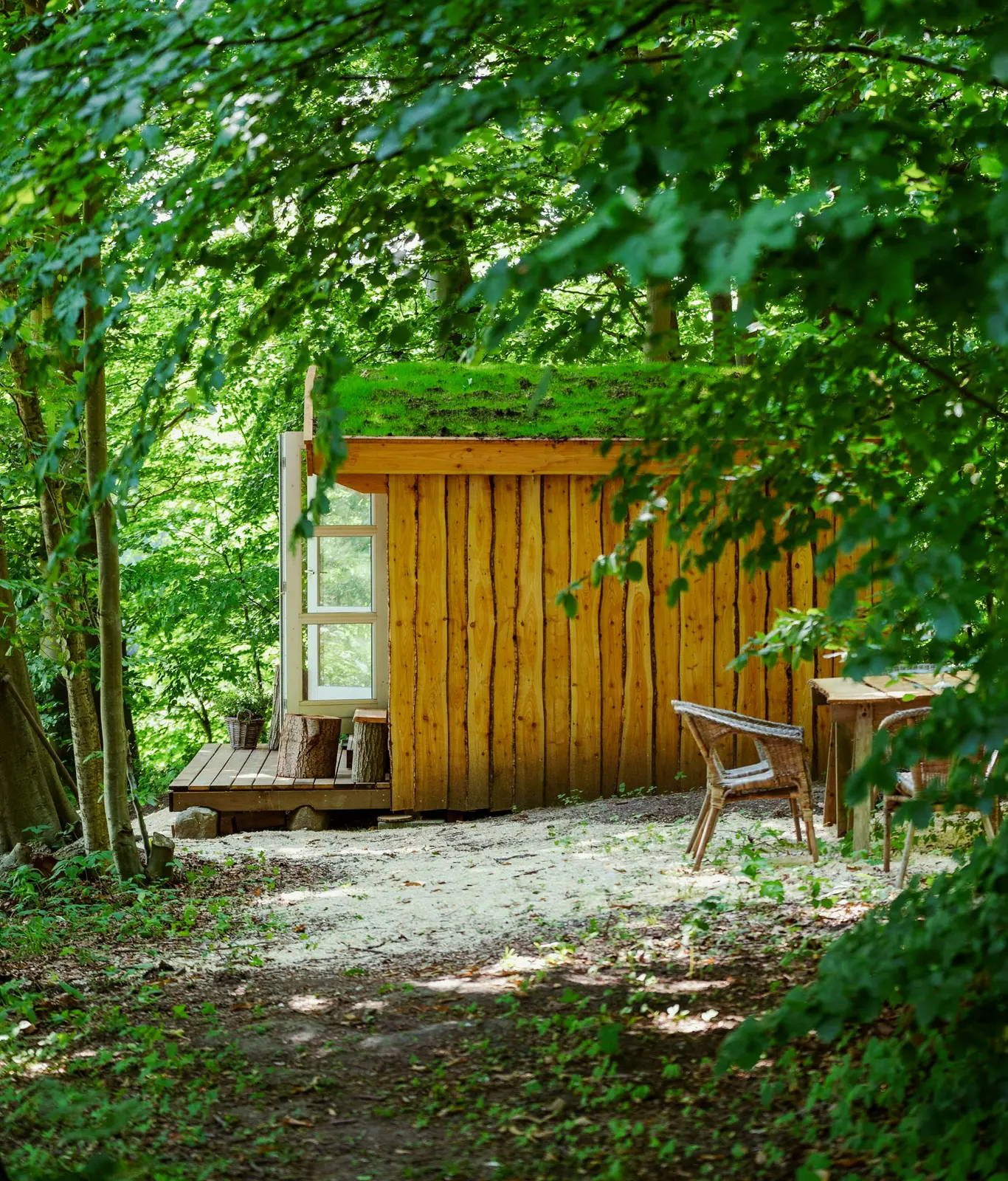 Camp Purreskoven: Vores eksklusive hilltop hytte, Camp Purreskoven, ligger skjult i skovkanten på en lille høj og tilbyder et privat tilflugtssted fra resten af glampingområdet. Hytten er udstyret med moderne bekvemmeligheder som elektricitet og varme, og har sit eget bålsted og udendørsområde. Nyd stilheden væk fra de andre gæster, en aften ved bålet eller morgenmaden på terrassen med udsigt over skovens fredfyldte omgivelser.