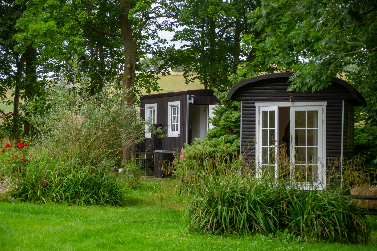 Molbo - 4-personers tiny house mellem bærbuske og nøddetræer