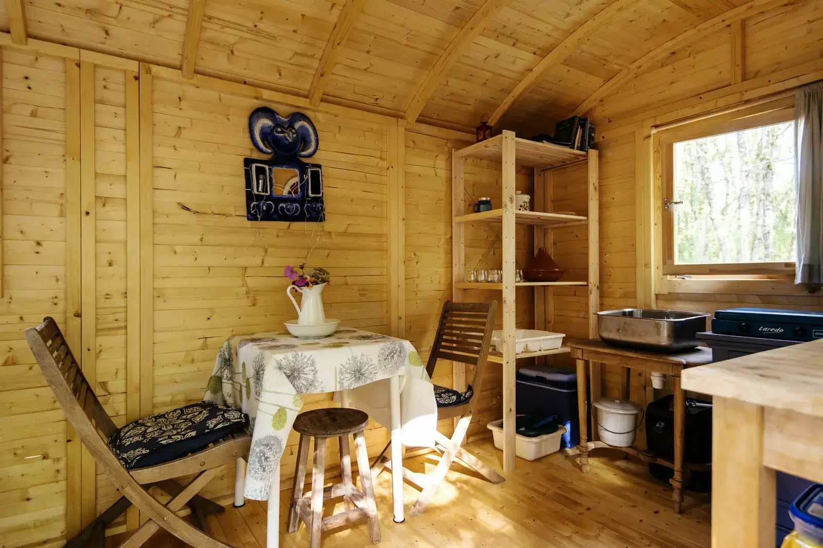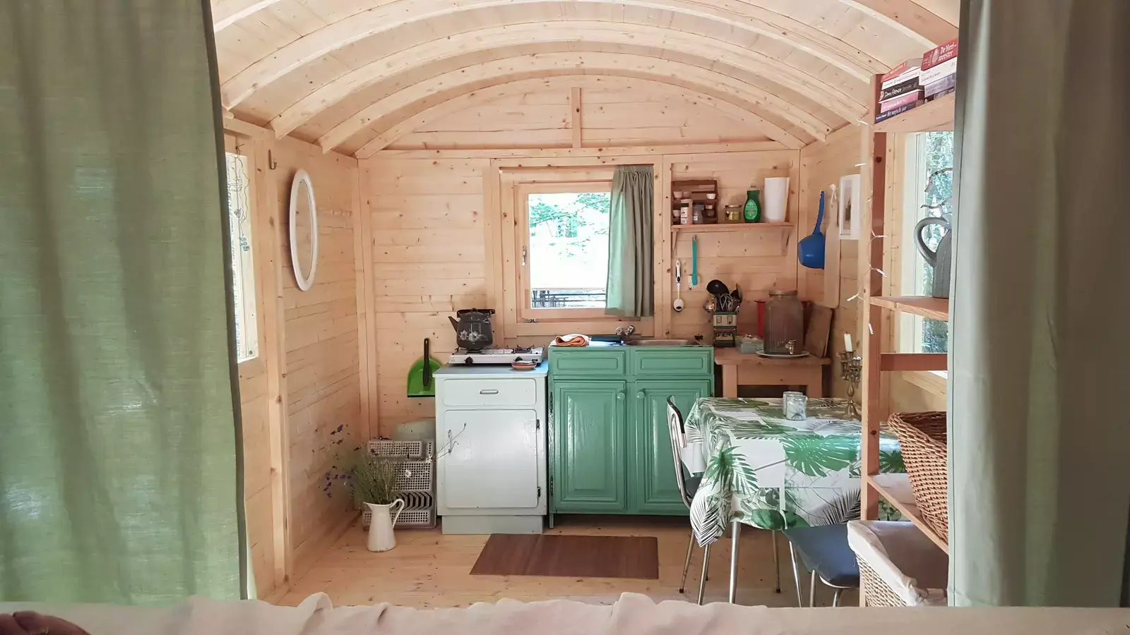 Sie wohnen in einem einzigartigen Holzanhänger, um in Einfachheit zu leben. In Ihrem kleinen Haus gibt es weder fließendes Wasser noch Strom. Wirklich „zurück zu den Wurzeln“. Obwohl; Es gibt ein Doppelbett und Sie können dort selbst kochen. Wir sind komplett ausgestattet. WC und Duschen befinden sich in der umgebauten Scheune. Sie können Ihre Lebensmittel auch kalt im gemeinsamen Kühlschrank aufbewahren. Das Land liegt im Wald, umgeben von Wäldern und Feldern. Es gibt eine Reihe kleiner hergerichteter Sitzgelegenheiten und Hängematten für alle. Es gibt eine Terrasse, auf der Sie etwas trinken können. Entdecken Sie die schöne Region Puisaye in Yonne, 250 km südlich von Paris und 30 km südlich der charmanten Stadt Auxerre. Zwischen Vézelay und Guédelon kommen Sie hier zu sich. In der Nähe der Stadt Druyes les belles fontaines, neben dem Dorf Sougères und Puisaye, befindet sich das fast 8.000 m2 große Gelände von Umai Naturellement. Hier können Sie einen Wohnwagen für ein oder zwei Personen mieten, in der Hängematte abhängen, einen Yoga-Kurs besuchen, Ihre kreativen Fähigkeiten entwickeln, Bücher aus der Bibliothek lesen oder einfach nichts tun. Und das alles im Einklang mit der Natur. - Wenn Sie das ganze Land mit einer Gruppe von 6 bis 10 Personen mieten möchten, fragen Sie nach den Möglichkeiten. - Stellplatz nur für Erwachsene - Hund in diesem Wohnwagen erlaubt (das Grundstück ist nicht eingezäunt)