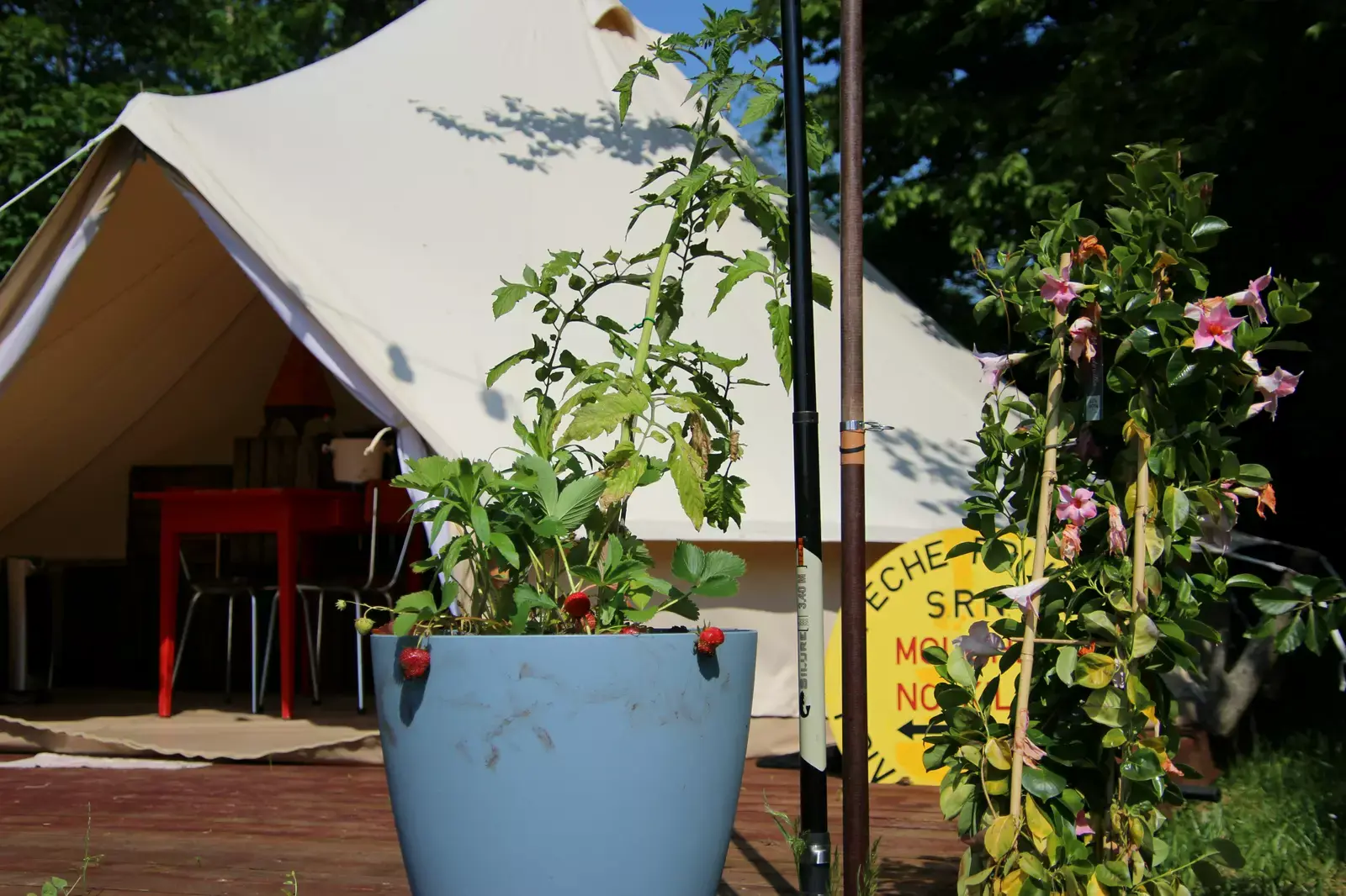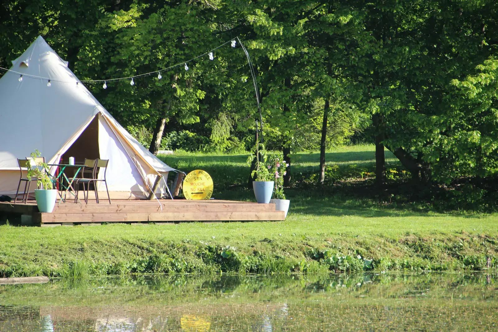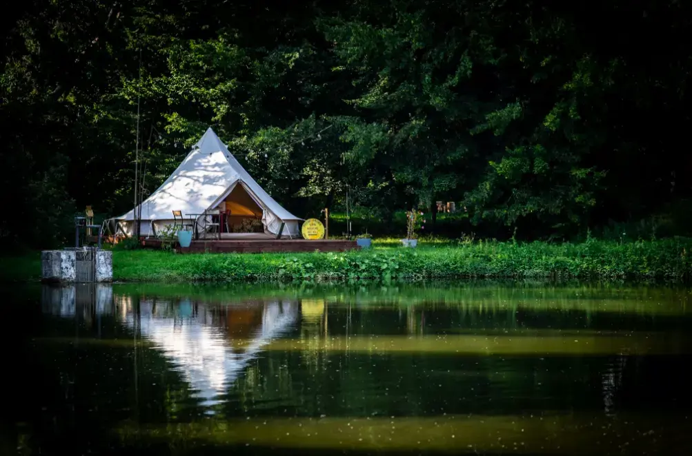 Inspiriert von dem Teich, dem es gegenübersteht, ehrt das Fischerzelt eine der Hauptaktivitäten von Naturia: das Fliegenfischen. 🎣 Geschmückt mit unseren schönsten Stangen und unseren schönsten Netzen bietet das Zelt eine atemberaubende Aussicht und unvergleichliche Ruhe. So können Sie bei einem Drink auf der Terrasse die Forellensprünge bewundern oder die neuesten „Tricks und Tipps der Fliegenfischer“ studieren. 🐠 Das Fischerzelt verfügt über alle notwendigen Annehmlichkeiten und kostet 65 €/Nacht für 2 Personen, mindestens 2 Nächte, mit einer Flasche Chimay zur Begrüßung.