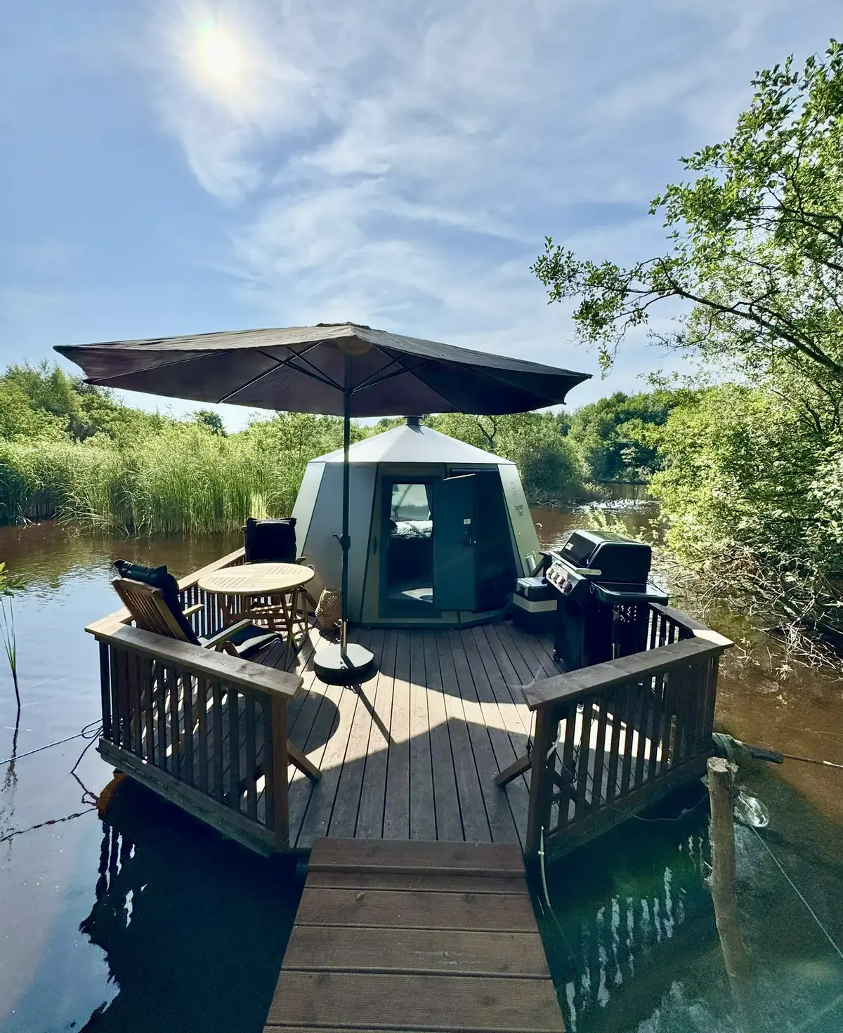 Das View Shelter ist ein geräumiges, luxuriöses und gemütliches Refugium. Genießen Sie absolute Ruhe mit direktem Blick auf einen See und die weite Landschaft. Träumen Sie von einer Auszeit, in der Sie Ruhe und Geborgenheit inmitten der Natur finden? Dann heißen wir Sie herzlich willkommen im Heart of Nature Glamping, Spa & Wellness – einem Ort, an dem Einfachheit und Luxus Hand in Hand gehen und an dem Sie inmitten der Natur Frieden und Achtsamkeit finden. Unser View Shelter ist etwas ganz Besonderes. Das großzügige Design vereint Funktionalität mit einer warmen und einladenden Atmosphäre. Kleine Details wie Lichterketten, weiche Textilien und gemütliche Accessoires schaffen eine entspannende und komfortable Atmosphäre, während Moskitonetze und Vorhänge dafür sorgen, dass Sie sich zurückziehen und sich in der ruhigen Umgebung wie zu Hause fühlen können. Das Refugium liegt ungestört in seiner eigenen friedlichen Ecke der Natur, mit direktem Blick auf einen spiegelglatten See und die Weiden, auf denen die Kühe des Nachbarn friedlich grasen. Hier können Sie vom Zwitschern der Vögel geweckt werden und eine Tasse Kaffee genießen, während die ersten Sonnenstrahlen den Horizont erhellen. Die Udsigts-Hütte ist der perfekte Ort, um einen magischen Sonnenaufgang zu erleben. Mit etwas Glück können Sie sogar ein Reh beobachten, das vorsichtig vorbeischleicht. Dank der einzigartigen Lage der Hütte genießen Sie absolute Privatsphäre inmitten unberührter Natur. Hier haben Sie Raum für lange Spaziergänge in der malerischen Landschaft, Zeit zum Nachdenken und die Möglichkeit, das Einfache und Authentische wiederzuentdecken – nur Sie und die Natur. Ob Sie ein romantisches Wochenende fernab vom Alltag suchen oder einfach nur eine kurze Auszeit, um die Ruhe zu spüren: Die Udsigts-Hütte bietet den Rahmen für ein unvergessliches Erlebnis. Hier geht es darum, den Moment zu genießen, die Gegenwart zu spüren und die stille Magie der Natur zu erleben. Wellness & Spa: Wenn Sie eine Übernachtung bei uns buchen, können Sie in unserem Spa-Bereich Wellness & Spa hinzubuchen. Nach Ihrer Buchung steht Ihnen der gesamte Bereich inklusive Orangerie exklusiv zur Verfügung. Wir informieren Sie, sobald Spa-Zeiten frei sind. Wir freuen uns darauf, Sie in unserer einzigartigen Unterkunft begrüßen zu dürfen, wo Sie der Sonnenaufgang, der Gesang der Vögel und die Stille der Natur erwarten. Willkommen im Herzen der Natur.