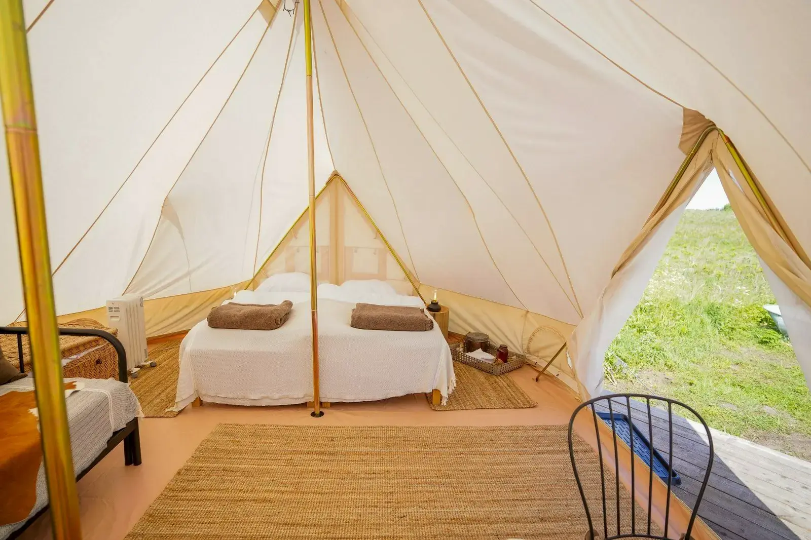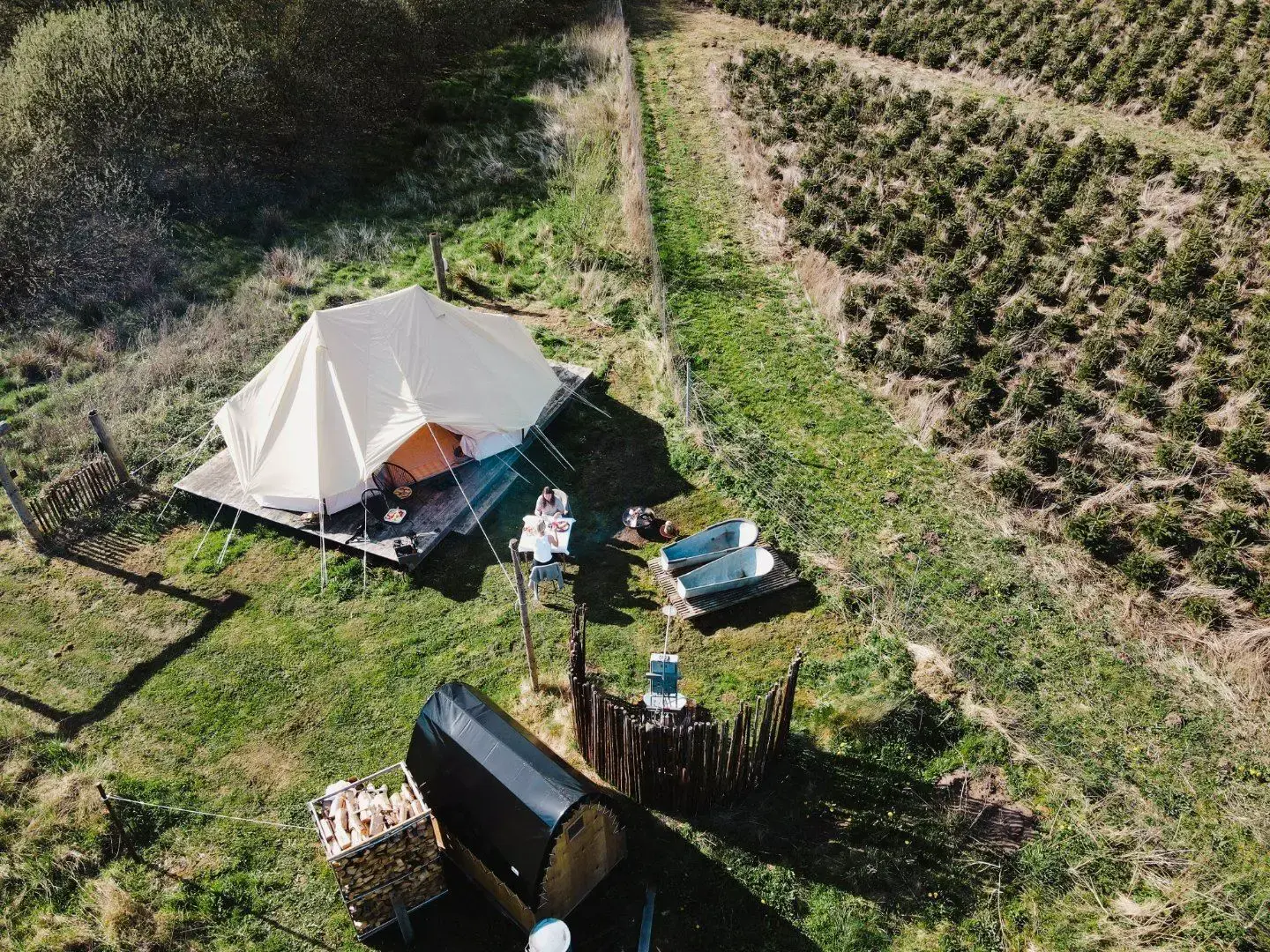 Privates Naturcamp, mit Platz für 2-4 Personen Camp Butterfly ist ein romantisches Luxuszelt, ausgestattet mit Doppelbett, Kühlschrank, Liegestühlen etc. Im Außenbereich erwarten Sie zwei Zinkbadewannen, eine Außendusche mit Warmwasser und eine Feuerstelle mit Geräten zur Kaffee- und Teezubereitung. Der private Campingplatz liegt idyllisch und völlig ungestört zwischen Apfelbäumen. Einrichtungen im Camp Butterfly Möglichkeit, die hausgemachte Lunchbox des Weinguts zu kaufen. (Tapas für 2 Personen) Möglichkeit, zusätzliche Zeit im Bath & Bubbles des Weinguts zu erwerben. - direkt beim Weingut gebucht und bezahlt. Möglichkeit, zusätzliche Zeit im Bath & Bubbles des Weinguts zu erwerben. Inklusive leichtem, hausgemachtem Frühstück. Beinhaltet drei ausgewählte Weine des Weinguts. Gemachtes Doppelbett mit Bettdecken und Kissen – Möglichkeit, ein Bett für zwei weitere Personen hinzuzufügen. Zwei Liegestühle für den Außenbereich. Kühl-/Gefrierschrank mit Wasser, Apfelsaft und leichtem Frühstück. Teller, Besteck, Wassergläser, Weingläser und Karaffe. Wasserkocher und Schnellkochtopf. Kaffee, Tee, Zucker. Grammophon und alte Schallplatten. Klapptisch und Esszimmerstühle. Außendusche mit Warmwasser, zwei Zinkbadewannen, Handtücher und Seife. Toiletten beim Weingut und eine kleine Naturtoilette beim Camp. Inklusive Weine und leichtes Frühstück Bei einem Glamping-Aufenthalt sind drei ausgewählte Weine des Weinguts inklusive. Und wenn Sie morgens aufwachen, gibt es Kaffee, Tee und Apfelsaft sowie ein leichtes hausgemachtes Frühstück. In der Unterkunft ist alles bereit Das Frühstück besteht aus: Hausgemachtem Knäckebrot, 1 Teller Butter, Käse, Aufschnitt und Marmelade, 2 Flaschen kaltem Wasser und 1 Flasche Bio-Apfelsaft. Außerdem Kaffee, Tee, Zucker und Milch. Wir lieben Lagerfeuer Deshalb gibt es in allen Unterkünften eine Feuerstelle/Feuerschale. In der Unterkunft finden Sie außerdem Brennholz, einen Hackklotz und eine Axt – so hat jeder die Möglichkeit, die Wärme eines knisternden Feuers zu genießen. Brennholz und Anzündholz sind selbstverständlich – das soll bequem sein. Führung Führung und Geschichten im Weingut täglich um 10 Uhr, abschließend Möglichkeit zum Einkauf im Hofladen.