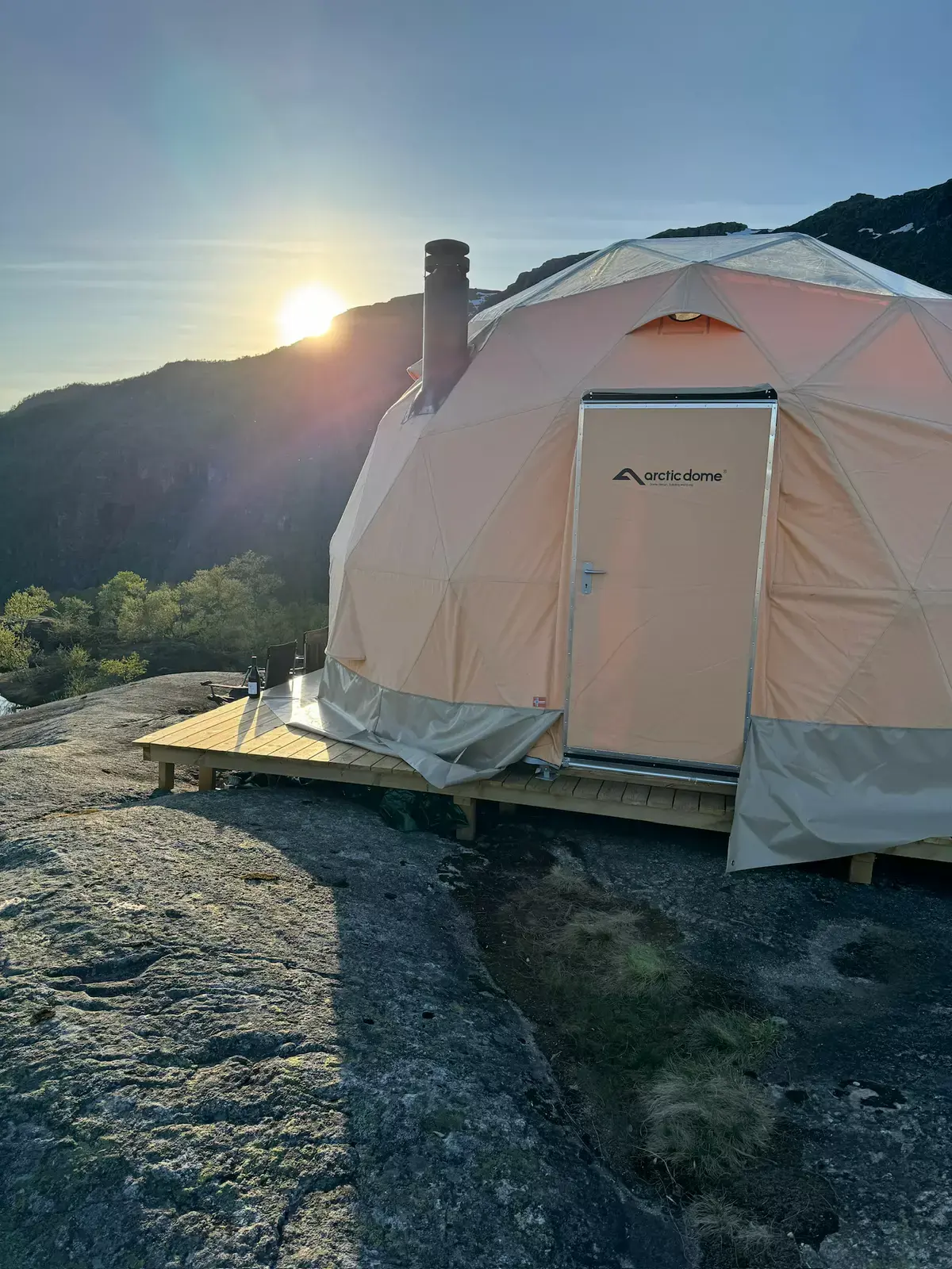 Die Kuppel liegt am Fuße einiger der schönsten Bergwanderungen Rogalands und ist ein idealer Ausgangspunkt für die Erkundung majestätischer Gipfel wie des Skaulen, der 1.554 Meter über dem Meeresspiegel liegt. Genießen Sie anschließend die ruhige Atmosphäre am Lagerfeuer. Im Sommer gibt es nur einen Steinwurf von der Kuppel entfernt mehrere Naturbadestellen, ideal für Familien.