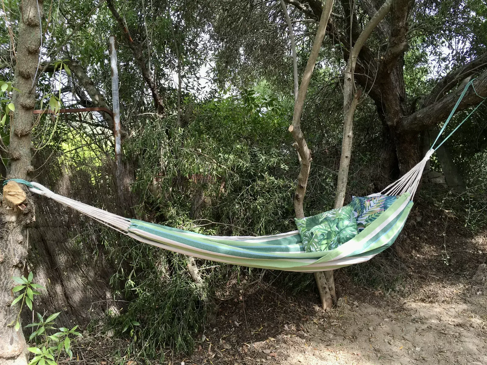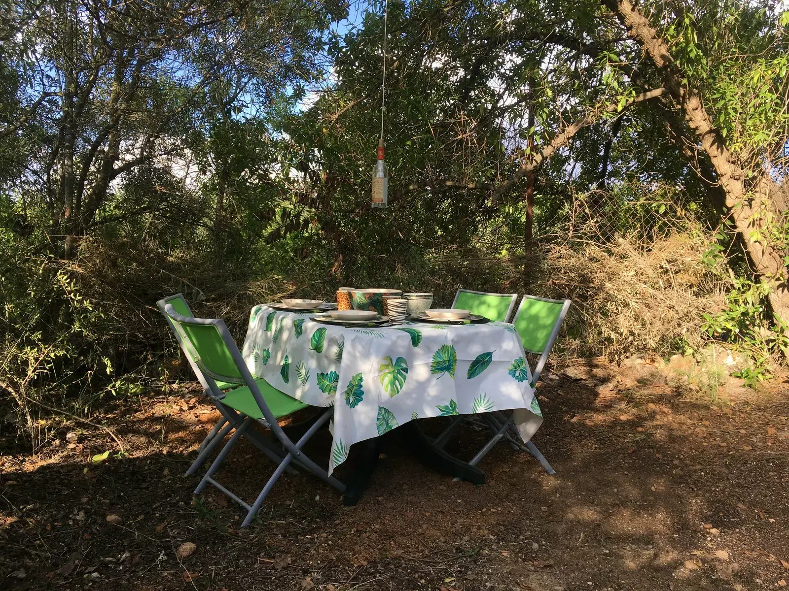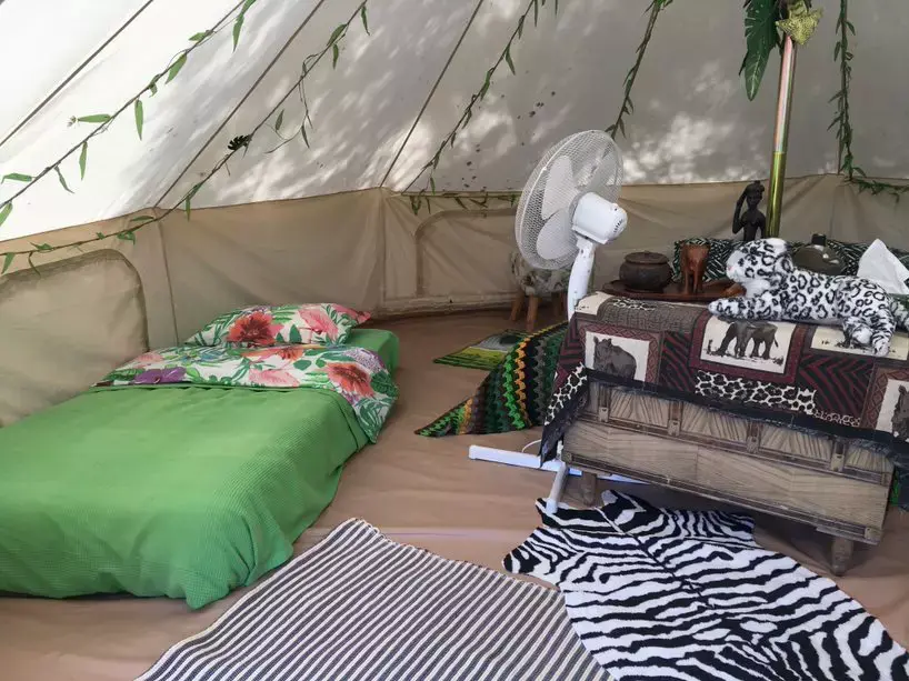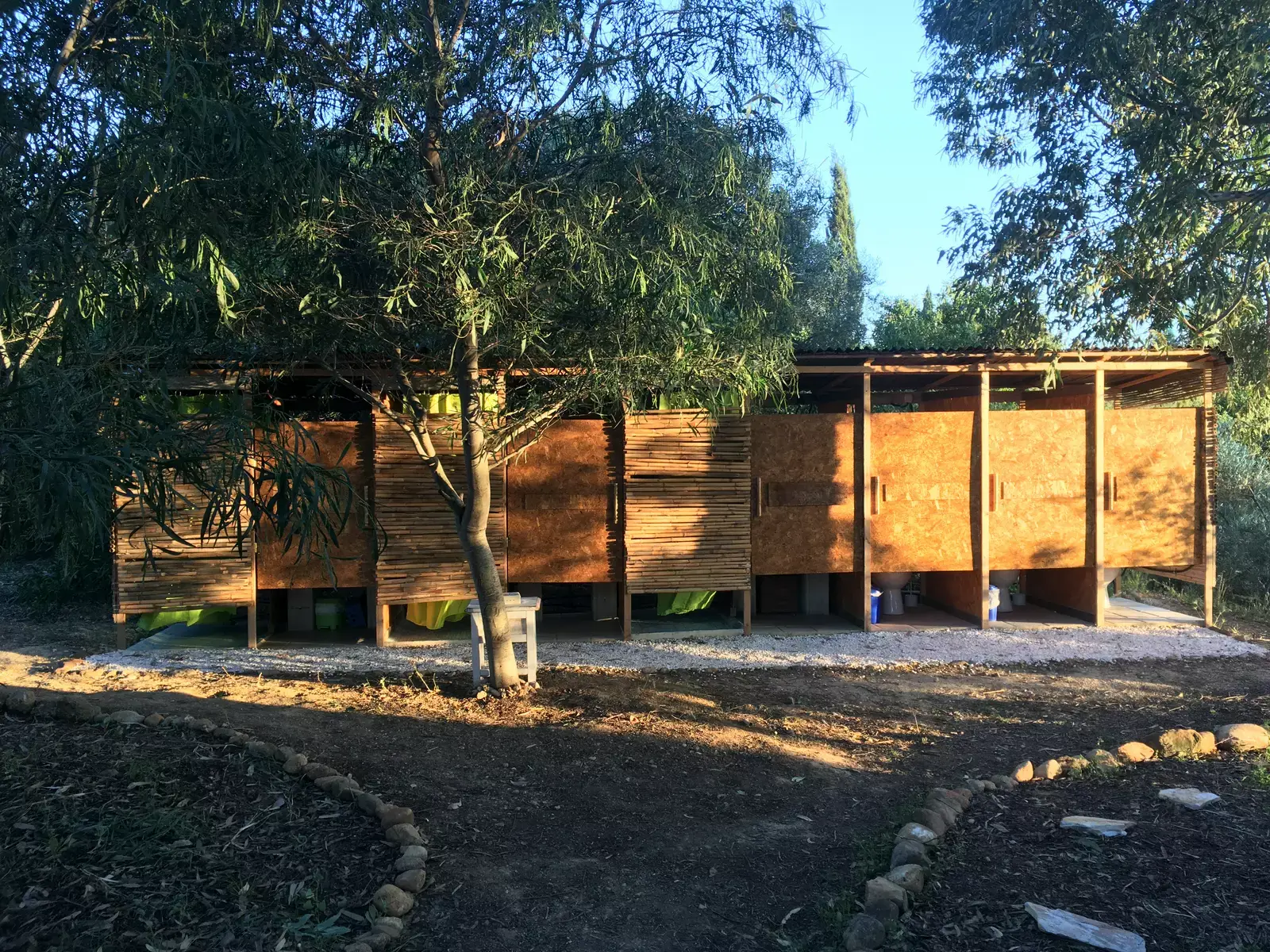 Unter einem großen alten Olivenbaum, versteckt in einer Ecke mit viel Privatsphäre, finden Sie unser Glockenzelt Jungle. Das Innere des Rundzeltes mit einem Durchmesser von 5m ist mit Ranken, tropischen Blättern und vielen wilden (und kuscheligen) Tieren geschmückt. In der Mitte befindet sich ein Kingsize-Bett, an den Seiten können bis zu zwei Einzelbetten aufgestellt werden. Für die wärmeren Nächte ist ein Ventilator vorgesehen, die Belüftung im Zelt ist optimal durch Moskitonetze, die alle Fenster und Türen abdecken, und Belüftungsöffnungen im Dach des Zeltes, die die warme Tagesluft leicht entweichen lassen. Außerhalb des Zeltes finden Sie die voll ausgestattete Außenküche mit fließendem Wasser, einem Kühlschrank und 2 Gasherden. Neben der Küche befindet sich ein großer Tisch mit vier Stühlen, an dem Sie Ihre zubereiteten Mahlzeiten genießen können. Zwischen 2 Olivenbäumen befindet sich eine Hängematte und hinter dem Zelt befindet sich eine versteckte Sitzecke. Die Gemeinschaftsbäder befinden sich in unmittelbarer Nähe.