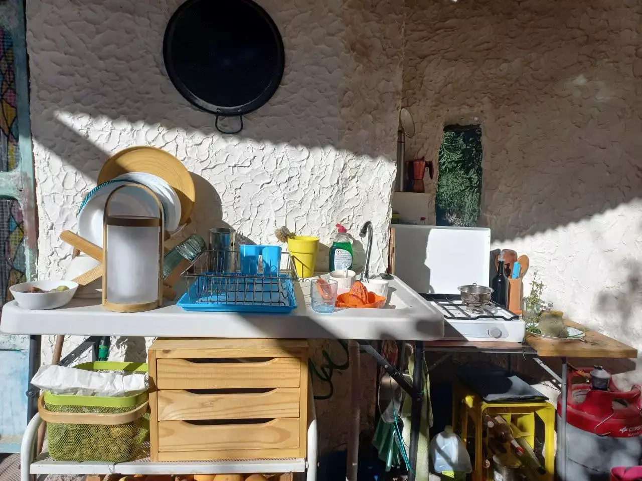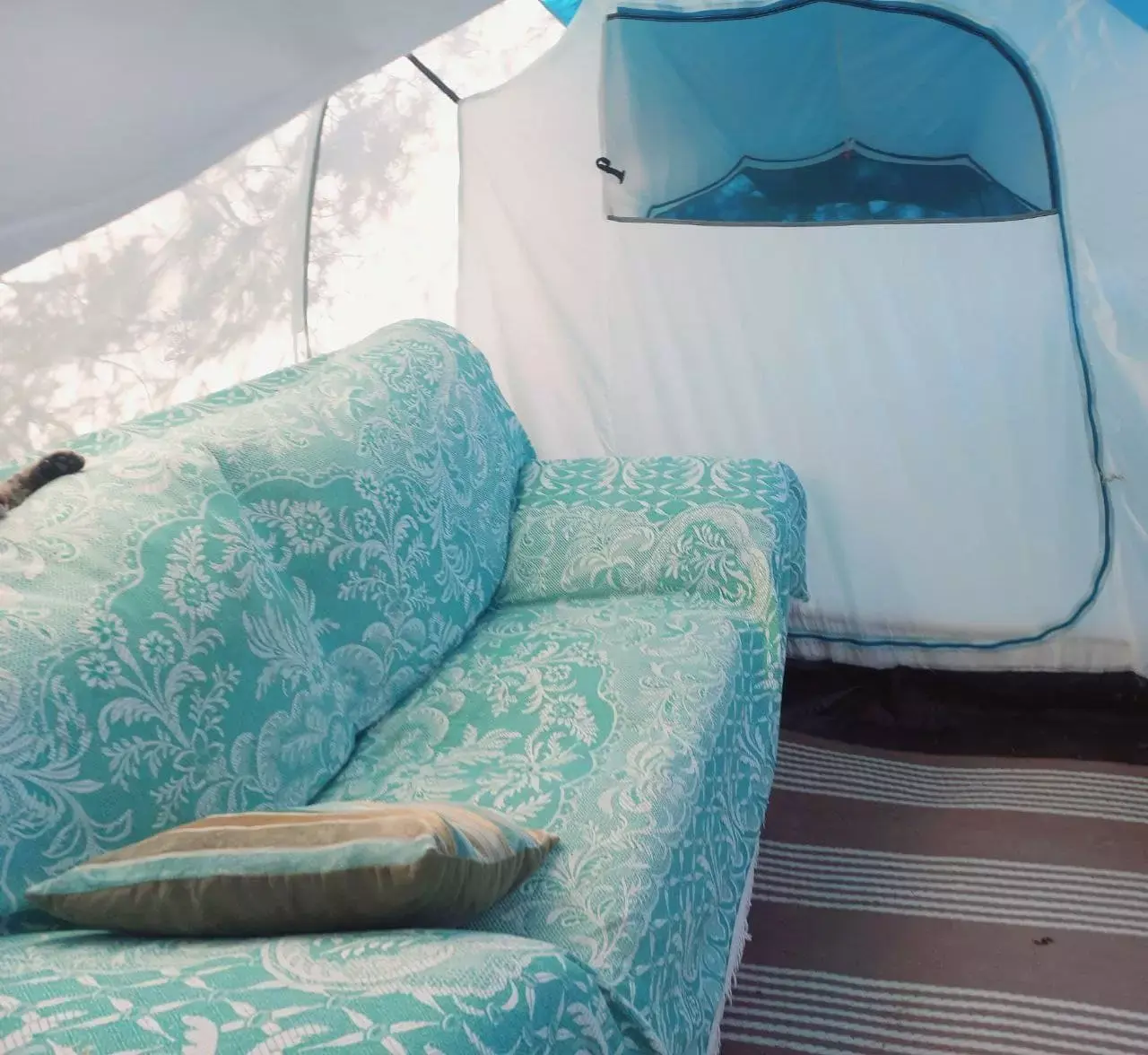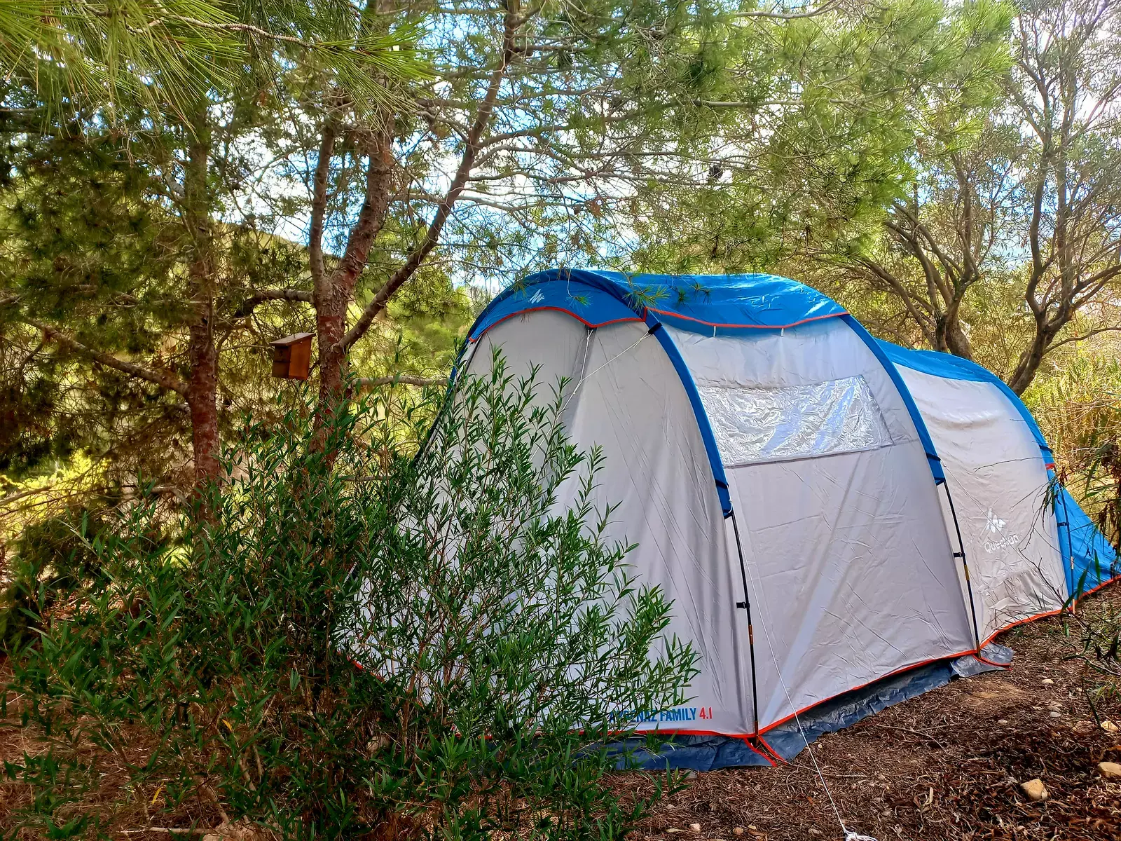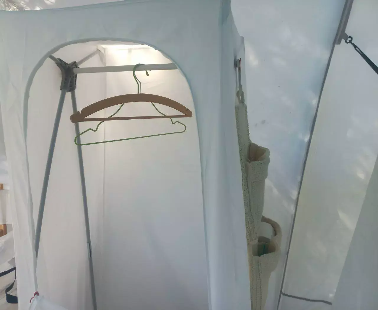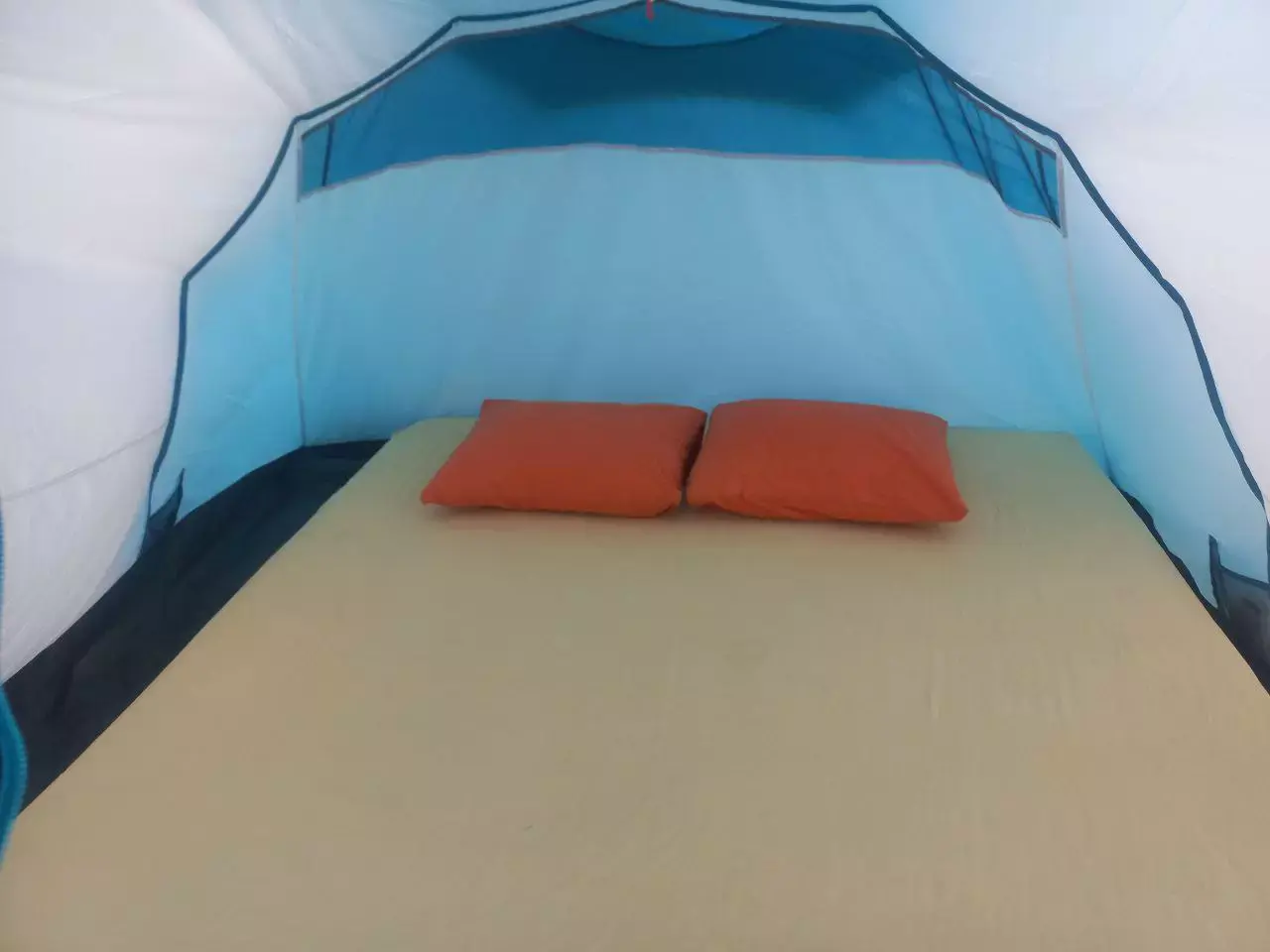 Zelten Sie unter einem Kiefernwald, wo Sie den Gesang der Nachtvögel hören können. Bequeme Matratze von 1,80 × 2 Metern. Kleiderschrank. Outdoor-Sofa. Ein gemütlicher Ort mit der natürlichen Frische der Bäume und der Meeresbrise. Sie können die Gemeinschaftsküche des Hofes und die Solardusche im Freien nutzen. Ein bezaubernder Ort für Naturliebhaber.