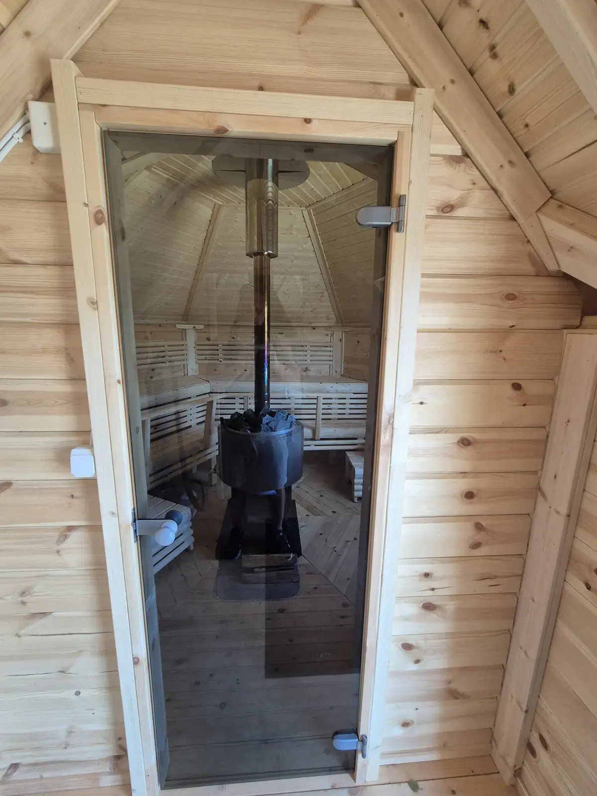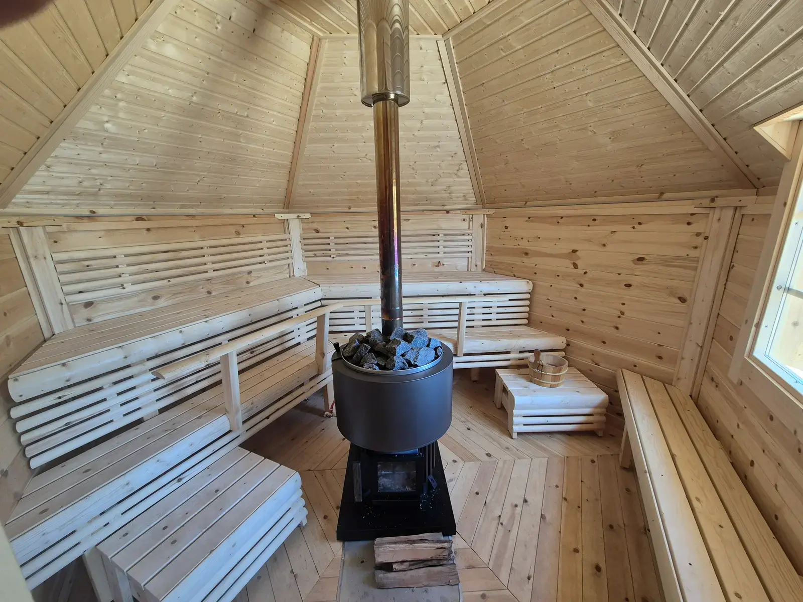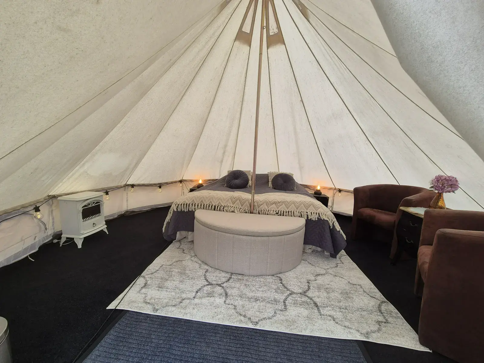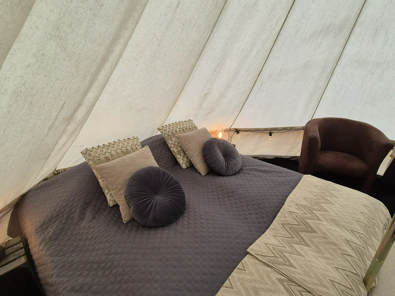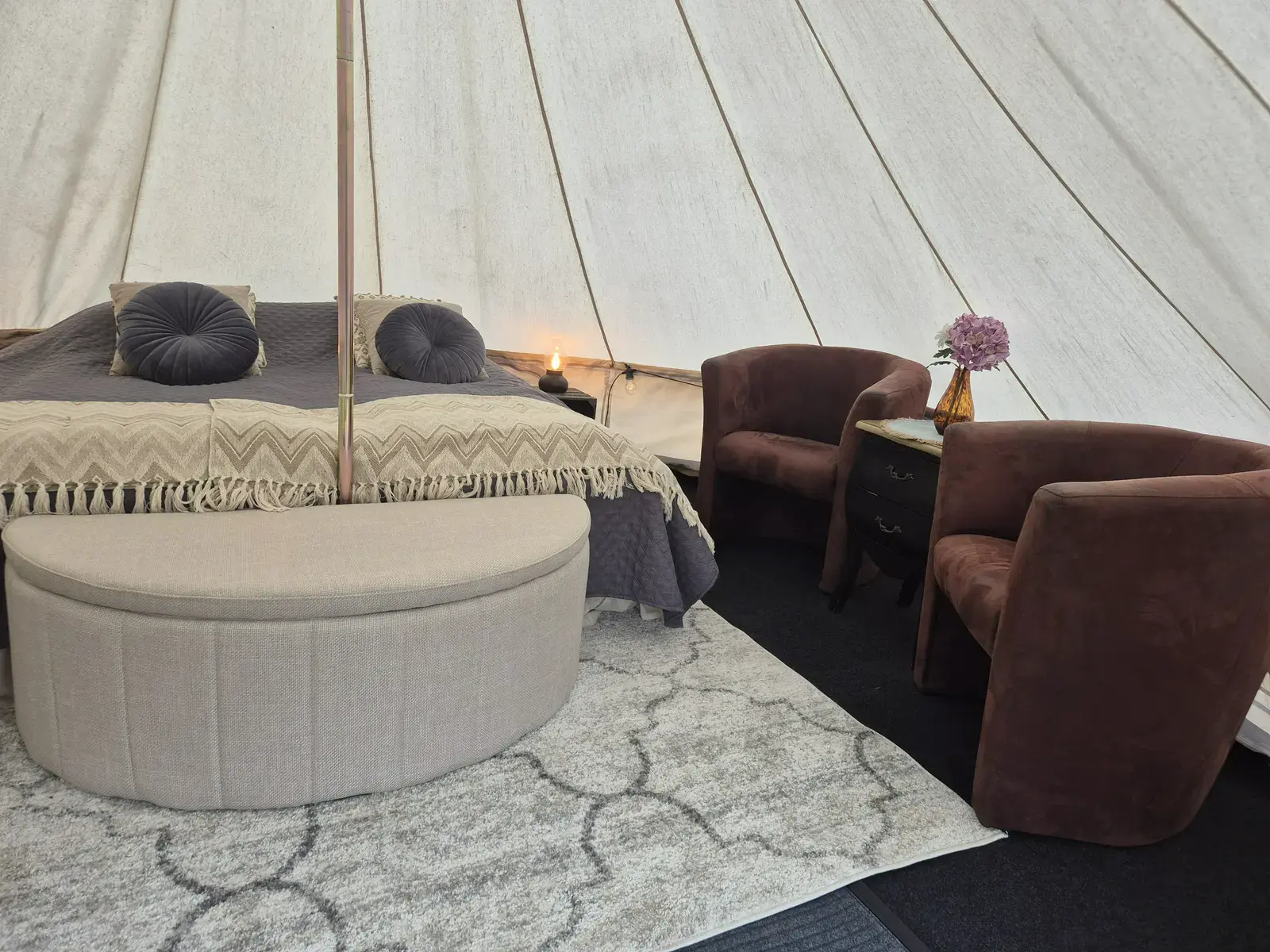 Das Zelt liegt direkt an einem kleinen See. Neben einer Saunakabine und einer Grillhütte gibt es auch einen Whirlpool mit Steg und Badebereich. 30 Meter entfernt befindet sich ein komplett neu gebautes Badezimmer. Das Zelt verfügt außerdem über Strom.