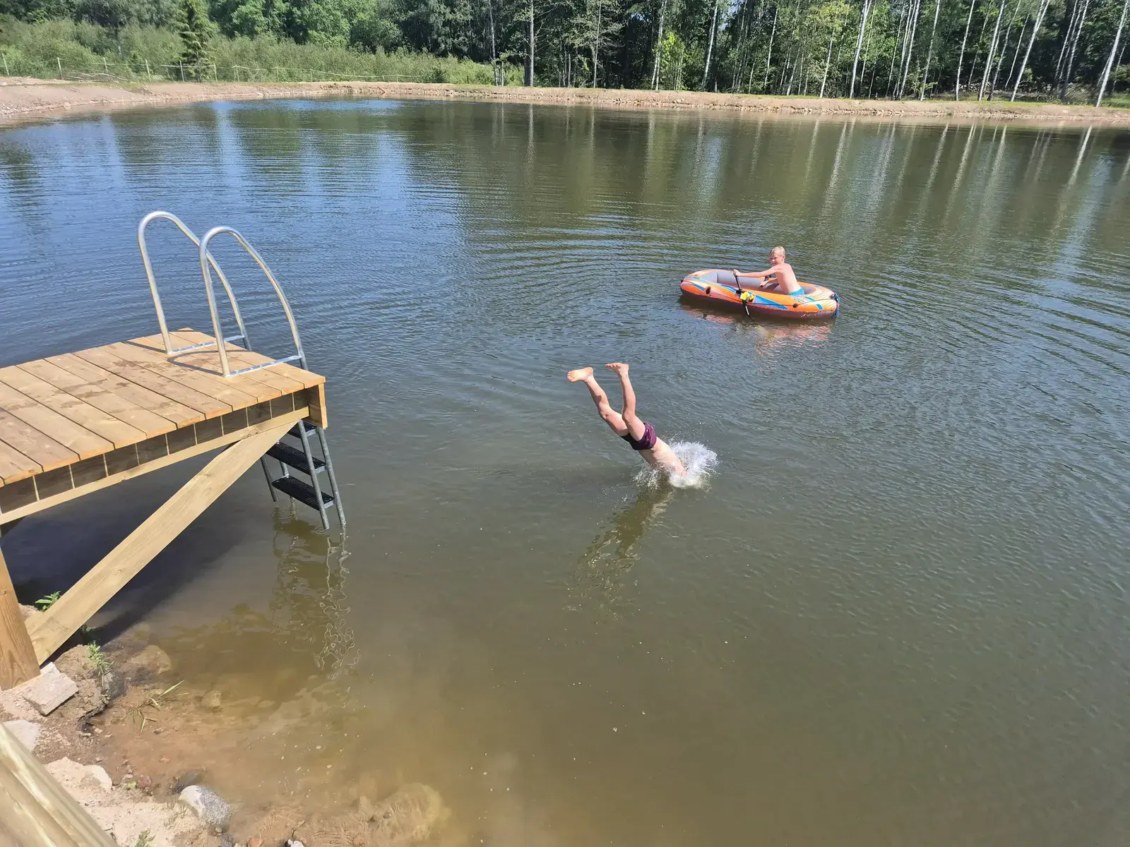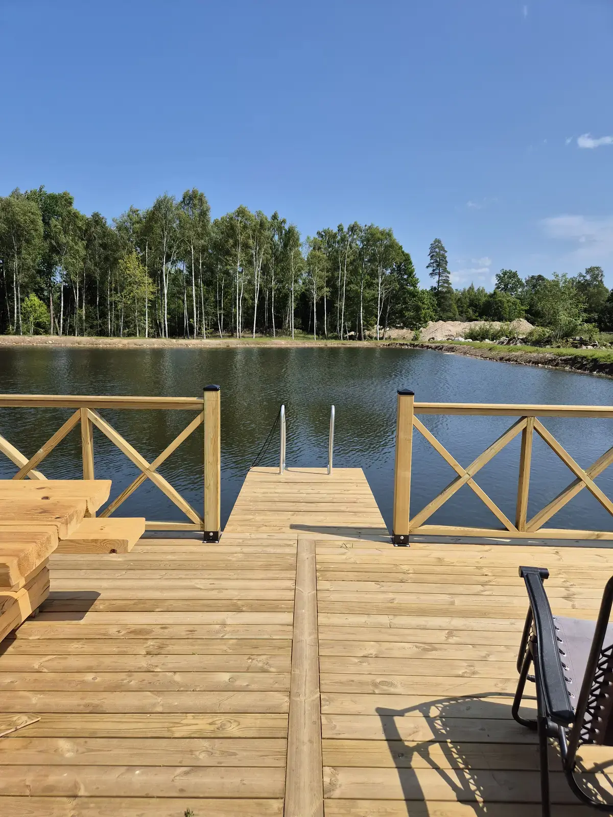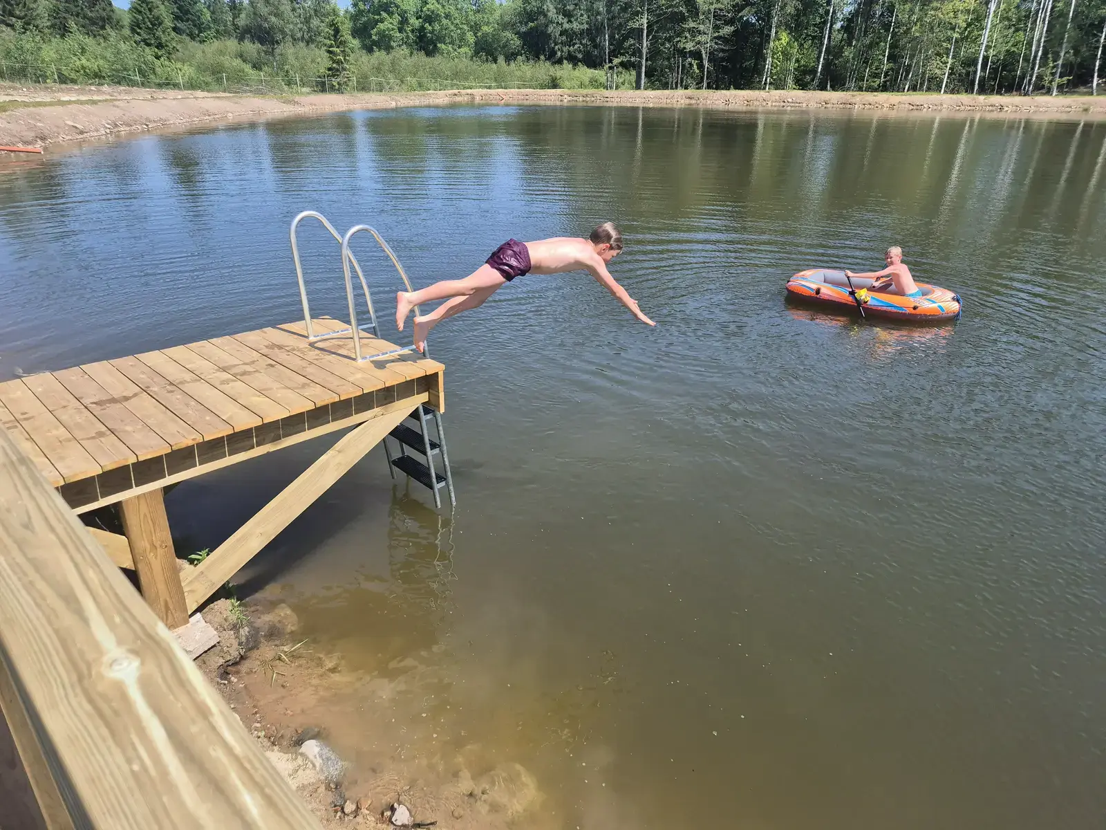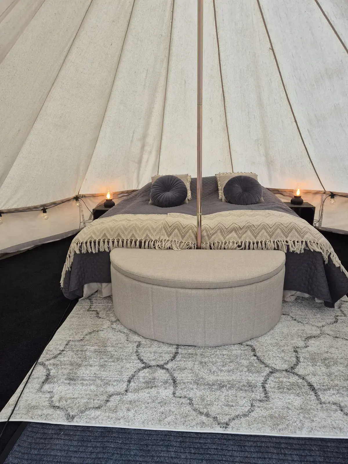 Das Zelt liegt direkt an einem kleinen See. Neben einer Saunakabine und einer Grillhütte gibt es auch einen Whirlpool mit Steg und Badebereich. 30 Meter entfernt befindet sich ein komplett neu gebautes Badezimmer. Das Zelt verfügt außerdem über Strom.