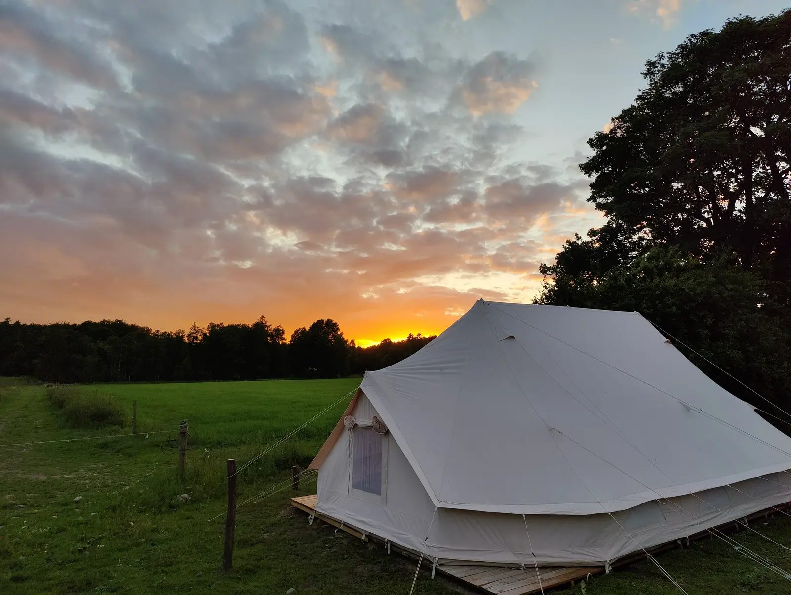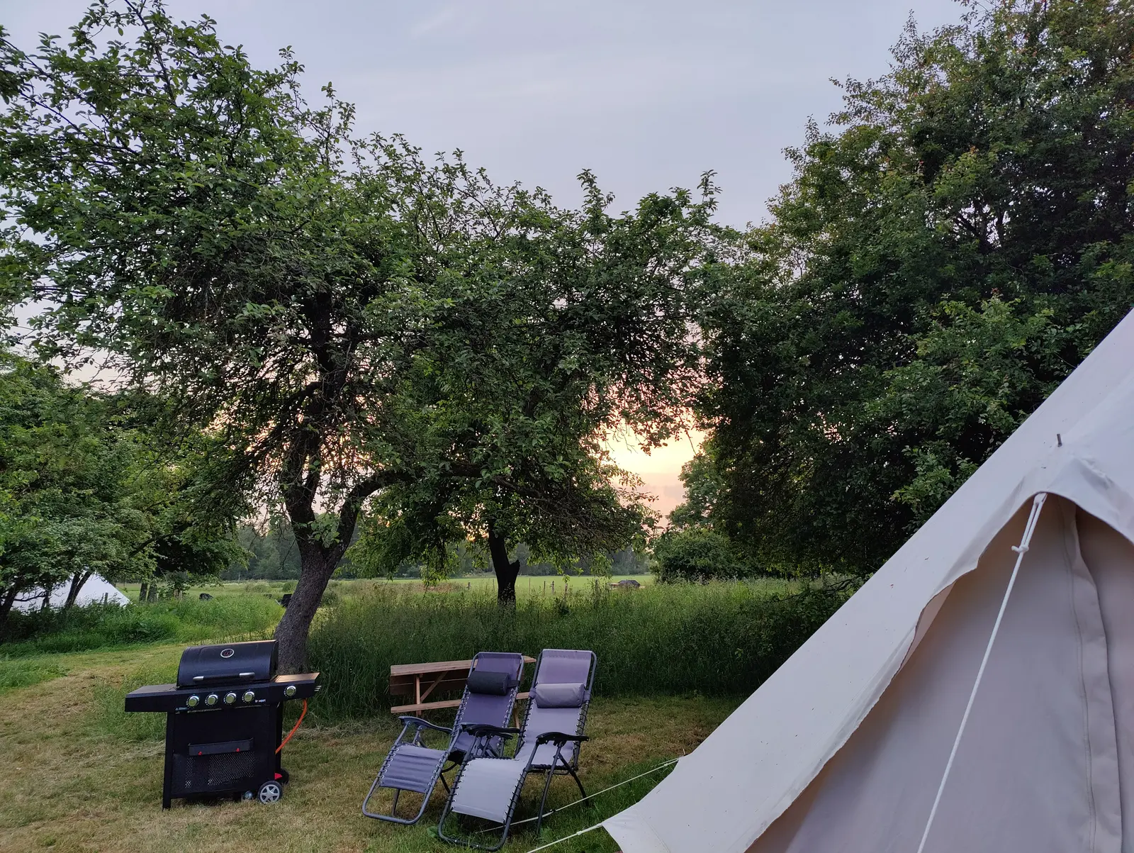 Oplev et autentisk økologisk landbrug og Ølene fuglereservat fra et af vores luksus bomuldstelte med 28m² at boltre sig på. Inviter din partner, familie eller venner med ud i naturen og hør sanglærken synge fra din hængekøje. Tilbered vores økologiske og biodynamiske produkter på din gasgril, og snup noget koldt at drikke fra dit køleskab. Besøg fugletårne til fods få kilometer fra teltet. Slut dagen af i godt selskab på terrassen under stjernerne.