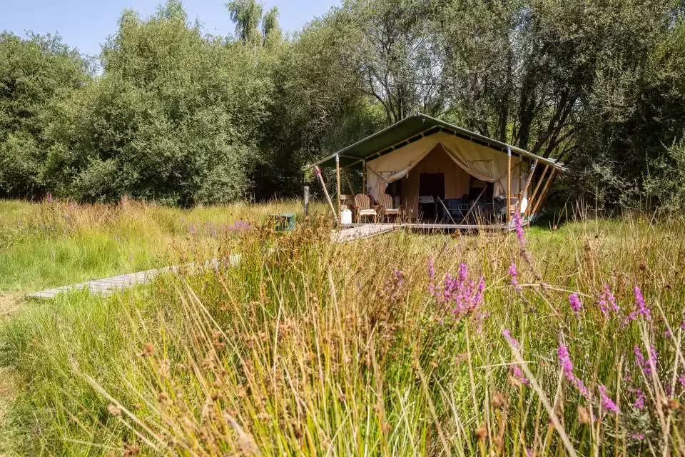 The safari tent is another type of glamping tent in France that is very popular. Safari tents are well suited for warmer weather because of their open design and front deck. Besides, safari tents are very spacious – this safari tent at Ecolodge la Maison Joulin has a shower cabin and the safari tent on Ferme de Keruzerh even has two rooms.