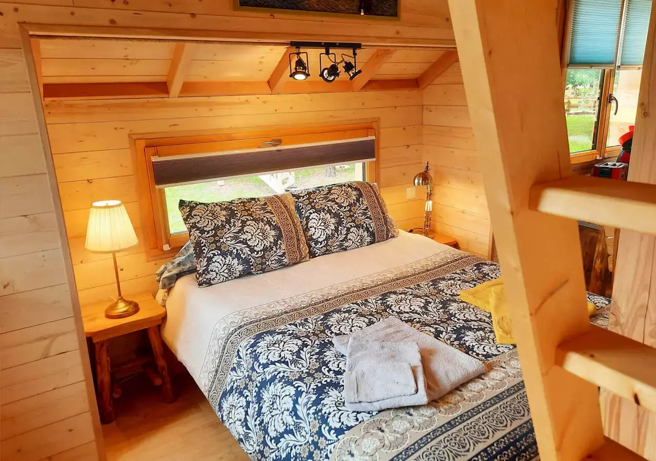 A walkway like a landing stage for an unforgettable stay above the walnut grove: welcome to our Prague cabin! Characteristic : For 2 people - 4 places: a double bed and 2 single beds upstairs. - Kitchenette - Coffee machine, kettle and hair dryer - Bathroom, shower and WC - Sheets and towels - Television - Wireless - Garden furniture - Car park The framework: We have a grandiose panorama, very touristy region, a high place of resistance with many cultural and sporting activities.