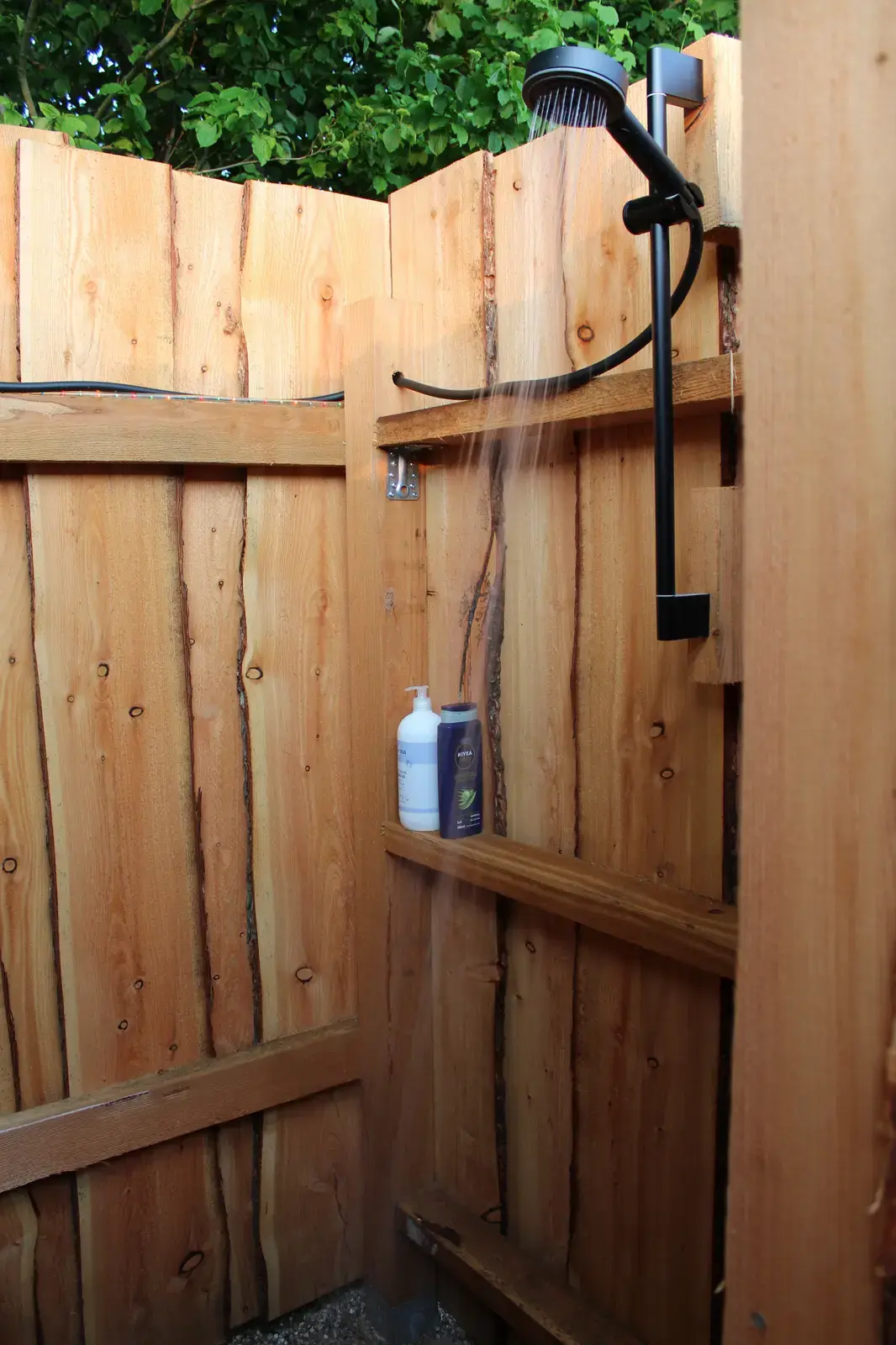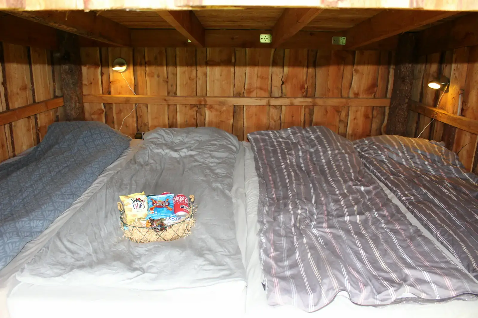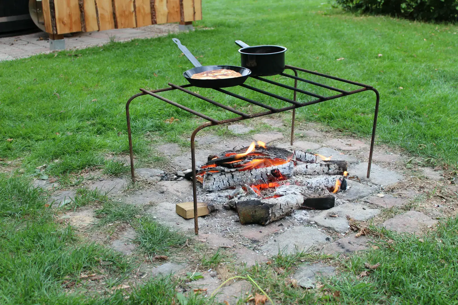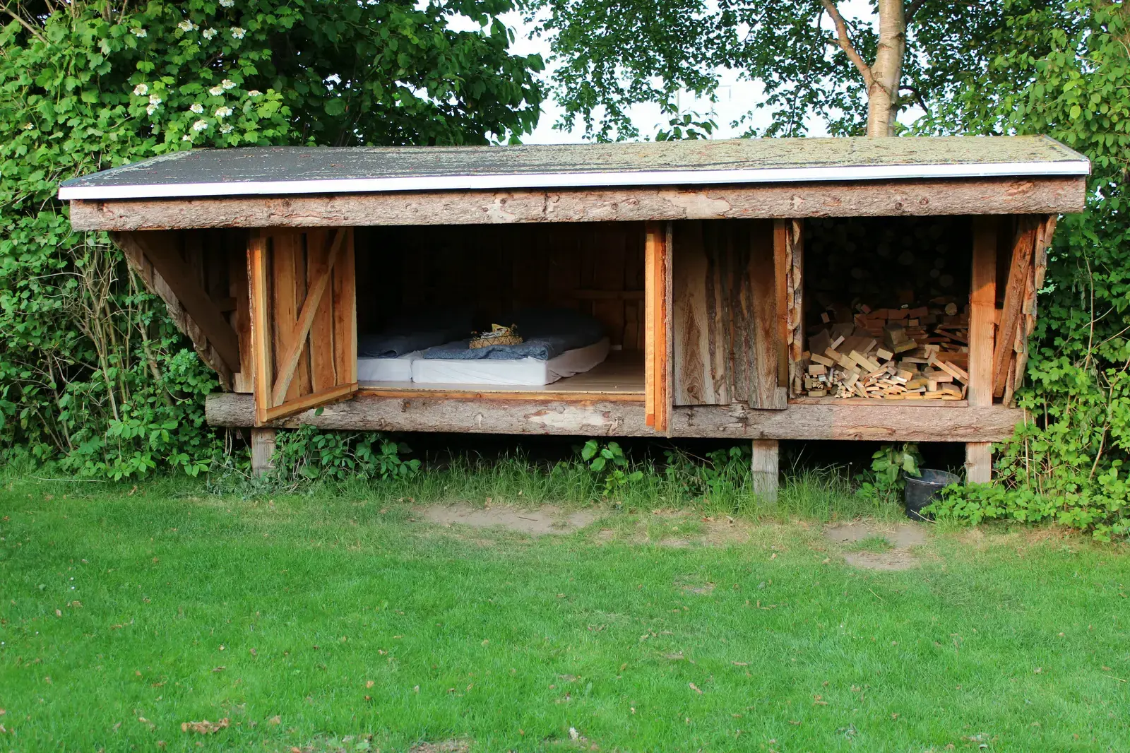 Perfect for a break from everyday life, where nature and each other are in focus. Our luxury shelters have both electricity, lighting and the possibility to completely shut off from the outside world. Enjoy a campfire, barbecue and relaxation in the outdoor furniture. Indoors you will find a small kitchen corner with espresso, microwave and access to the toilet. You can bring your own dinner, which can be prepared over a campfire (or indoors in bad weather). There is basic kitchen equipment such as a fire grate, grill pan, a small pot, cutting board, knives. Look forward to sinking into the warm wilderness bath and enjoying a refreshing outdoor shower - an experience of peace, pampering and presence under the open sky.