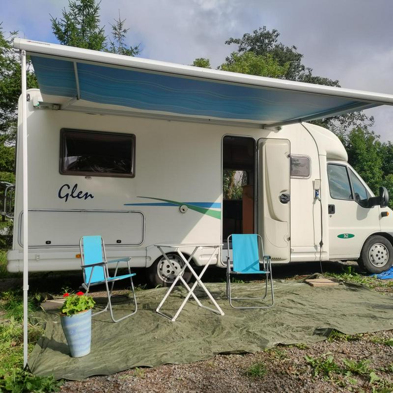 The motorhome is parked by the hotel with its own patio. Guests have access to the hotel's facilities such as WC, guest kitchen, conservatory, patio, whirlpool.