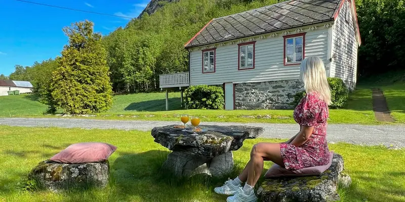 Koselig hytte med panoramautsikt ved Oppstrynsjøen
