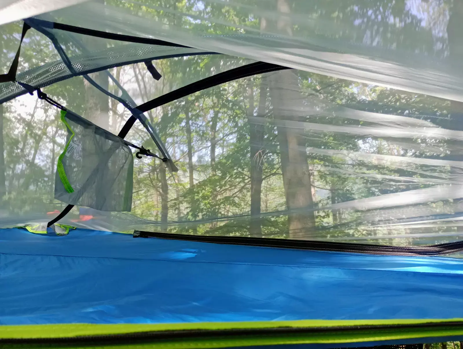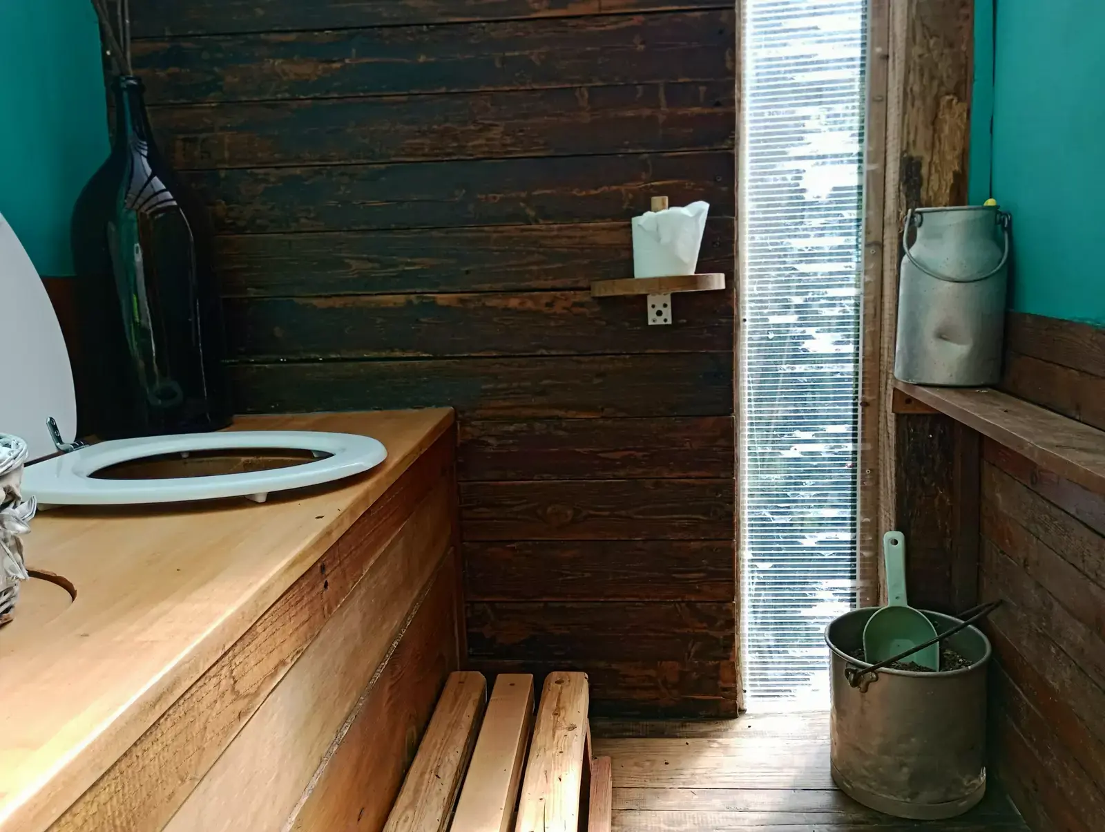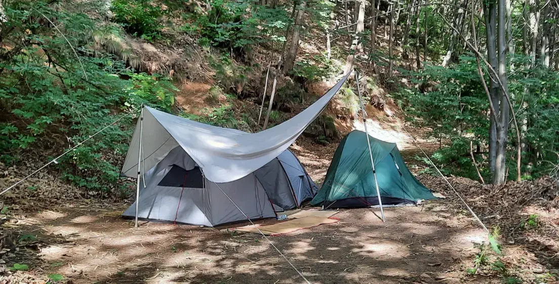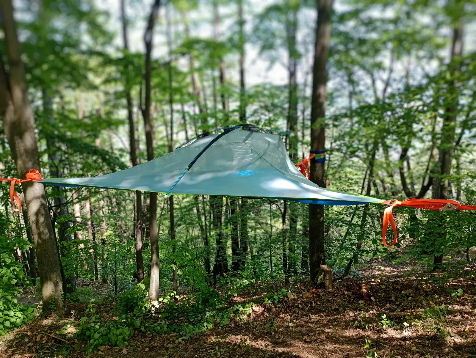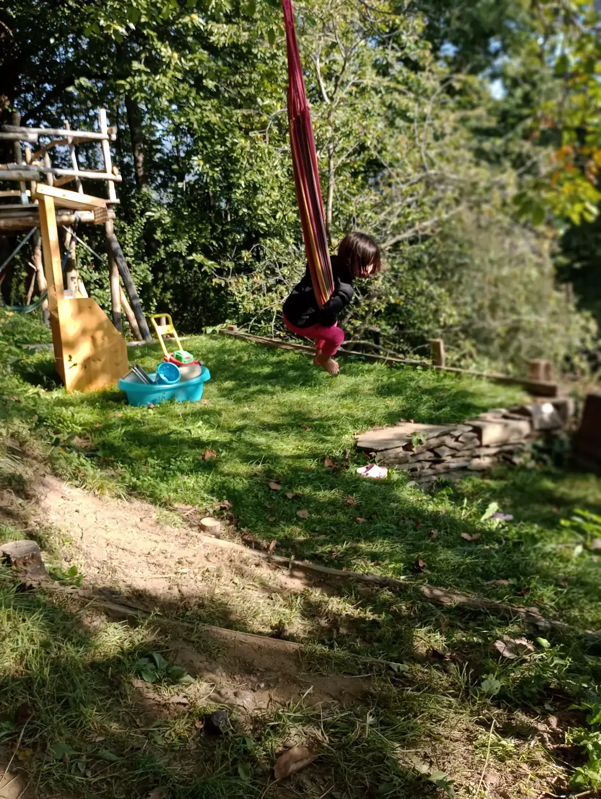 Tienda de árbol: La cama es una hamaca de doble tensión suspendida entre los árboles. Cuenta con una correa divisoria ajustable en el centro que transforma el suelo en una o dos camas. Está equipada con mosquitero y protector impermeable contra la lluvia. Será divertido para los niños y una experiencia inolvidable para los adultos. No se proporcionan sacos de dormir. Hay una habitación interior disponible para guardar el equipaje. El baño es un inodoro de compost cómodo y limpio que trata los desechos sólidos humanos mediante procesos de compostaje y deshidratación, obteniendo un producto final que puede utilizarse como mejorador orgánico del suelo en la agricultura. El agua de la ducha se calienta con paneles solares y está a su disposición. La cocina está al aire libre, pero resguardada, equipada con estufa y fregadero, vajilla y todo lo necesario para cocinar. Disfrute de sus comidas en la gran mesa de madera en el centro del mirador. Aquí encontrará electricidad, agua potable, un enchufe y un refrigerador. Habrá hamacas para relajarse y juegos entre los árboles para el disfrute de adultos y niños (trampolín, tirolesa, circuitos de equilibrio). Traiga su propio saco de dormir. Tenemos dos perros, dos gatos y algunas gallinas muy felices; no podemos alojar mascotas.