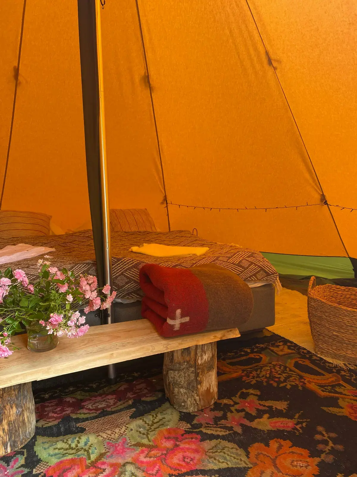 Glamping nature à Korsgaarden Le glamping nature à Korsgaarden est situé à seulement 1h30 de Copenhague. Vous pourrez vous détendre et vous relaxer en famille, en amoureux ou entre amis. Le pigeon forestier (nordictent) est caché dans la brousse, à environ 60 mètres des tentes 13 et 10, près d'un délicieux feu de camp commun, protégé par un parachute qui se déploie à l'allumage. Le prix pour 2 personnes par nuit inclut le petit-déjeuner. Les autres repas sont à votre charge, mais nous disposons bien sûr de tout le nécessaire pour vous permettre de préparer facilement de délicieux repas au feu. Veuillez noter que la photo peut différer de la réalité. Le petit-déjeuner se compose de café, de thé, de jus de fruits, de yaourt croustillant et de pain au levain au fromage. Korsgaarden est une véritable oasis, avec de vastes espaces naturels où chacun peut se promener librement et où les enfants peuvent s'immerger dans l'aventure et le jeu. À la tombée de la nuit, les braises du feu se réchauffent et les étoiles apparaissent. Vous entendrez peut-être le hululement du hibou. Si quelqu'un a des histoires à raconter, lancez-vous. L'ambiance n'est jamais aussi chaleureuse qu'autour d'un feu de camp. Arrivée : entre 15 h et 21 h Envoyez un SMS et nous vous accueillerons. Suppléments : Chiens : 300 € Sauna par personne : 135 € Vélo par jour : 300 € Paddleboard par heure : 150 € Mega paddleboard (6 personnes) par heure : 250 € Permis de pêche : 150 € Location de canne à pêche : 100 € Barque par heure : 150 €