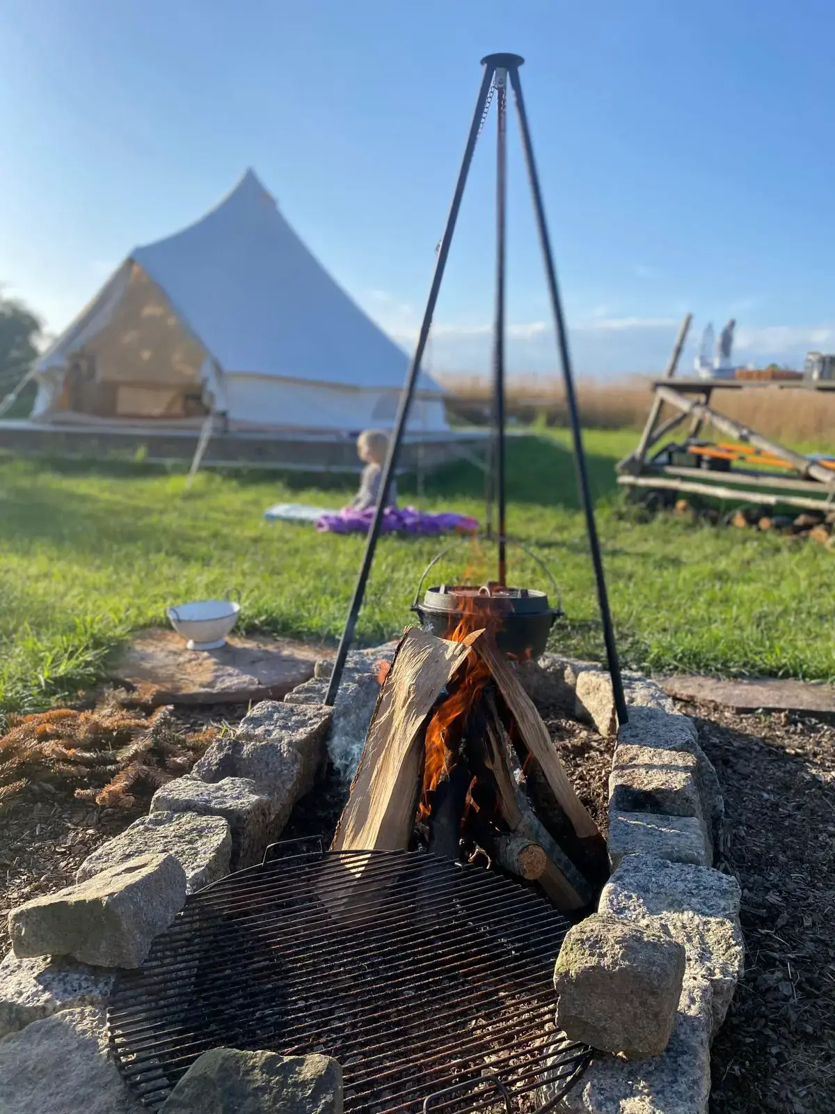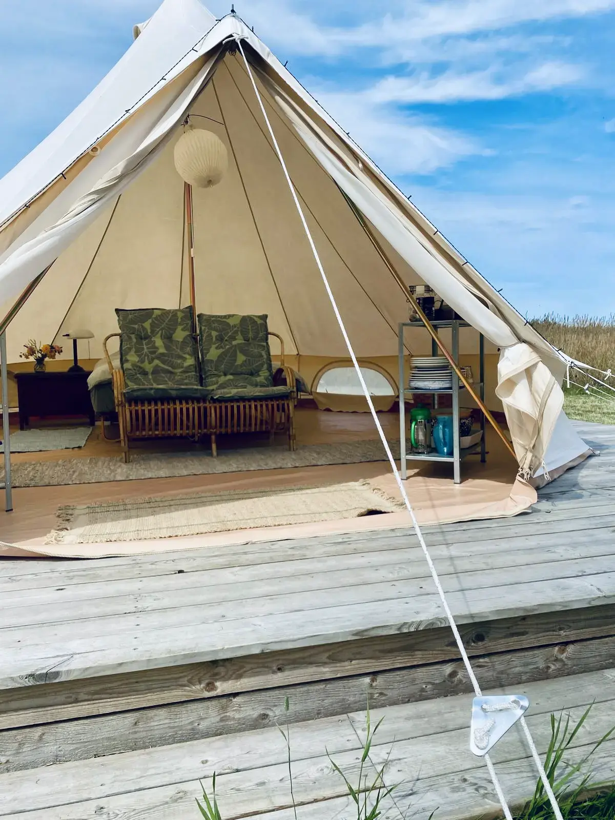 Profitez de la nature et de la tranquillité dans une magnifique tente de glamping nichée dans la prairie d'une ferme bicentenaire, dans un cadre pittoresque près de Svaneke. Idéalement située pour des randonnées dans le magnifique Paradisbakkerne et sur le littoral unique de Svaneke et au-delà. Il n'y a qu'une seule tente sur le site, vous aurez donc l'espace pour vous seul, un endroit idéal pour votre intimité et votre espace personnel. La région regorge d'animaux sauvages et la vue sur les étoiles est incroyable. À côté de la tente, vous trouverez une cuisine extérieure avec tout le nécessaire pour cuisiner au feu, ainsi qu'une douche privée avec eau froide. La tente est équipée d'un lit double confortable, d'étagères et de tables de chevet, avec possibilité d'ajouter des lits d'appoint si vous voyagez avec des enfants. Notre hébergement est idéal pour les familles, avec une balançoire, un portique et d'autres jeux d'extérieur pour le plus grand plaisir des enfants. Les toilettes et la douche chaudes privées se trouvent à l'intérieur de la ferme. Vous y trouverez également un réfrigérateur, un espace buanderie et un lave-linge sur demande. Nous disposons d'un vaste potager où vous pourrez profiter des légumes de saison, de poules et de canards fournissant des œufs frais, ainsi que d'un joli jardin fleuri et d'un étang. Ce terrain de près de 2 hectares est entouré d'une forêt protégée. Suivez le ruisseau pour une agréable promenade à travers les bois qui mène directement à la tente par un sentier à travers la prairie. En quittant la ferme, juste en face se trouve l'église d'Ibsker du XIVe siècle. Au-delà, la station balnéaire très populaire de Svaneke se trouve juste en contrebas de la colline, à l'est. Véritable cœur de l'île, elle constitue un point de départ idéal pour explorer les magnifiques sentiers côtiers. Au sud se trouve Paradisbakkerne, une forêt et une vallée du Rift réputées pour leurs nombreuses randonnées époustouflantes à travers des paysages parmi les plus uniques de Bornholm. Si vous voyagez avec des enfants, Brændegårdshaven est à deux pas : un charmant parc d'attractions et un parc aquatique avec une mini-ferme et un lac de plaisance. Vous pouvez bien sûr choisir de passer vos journées à vous détendre à la ferme où vous trouverez la paix et l'espace et la possibilité de vous détendre dans le magnifique environnement naturel.