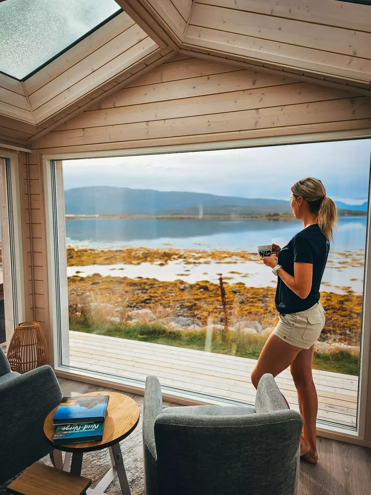Lorsque la simplicité et la modernisation jouent avec la nature, nous obtenons la véritable expérience. Asseyez-vous et profitez de l'expérience proche de la nature dans ces cabanes où la simplicité et la modernisation jouent avec la nature. Depuis les grandes fenêtres, la nature joue le rôle principal à l'intérieur. Cet hébergement est vraiment spécial et vous donne le sentiment de faire partie des éléments de la nature de l'intérieur. La vue est magnifique et à couper le souffle et vous rapproche de Senja. Cette cabine a son propre jacuzzi que vous pouvez utiliser. Installations: Lit double Garde-robe Salle de bain avec WC et douche Sèche-cheveux les serviettes Jacuzzi extérieur Peignoirs Chaussons en laine Petit frigo Bouilloire Café instantané et te Wifi Le petit-déjeuner au café Hyttekroa est inclus Reprenez contact avec la nature dans nos cabanes Nauste. Naust signifie maison à bateaux en norvégien. Ils servent à ranger les bateaux et les engins de pêche. Ils sont toujours situés avec la mer ou les lacs en Norvège. C'est pourquoi nous faisons de notre mieux pour vous permettre de profiter du magnifique paysage ambiant de Senja aux portes de votre propre Nauste dans une atmosphère authentique. Laissez le calme de la nature sauvage de Senja apaiser votre esprit. Nous sommes situés sur la deuxième plus grande île de Norvège, Senja. Dans notre camp, vous pourrez profiter du paysage côtier et des fjords juste à la porte du parc national d'Ånderdalen et du fjord Tranoybotn. La région offre de fantastiques randonnées en été comme en hiver, des visites guidées en kayak, en raquettes et des randonnées.