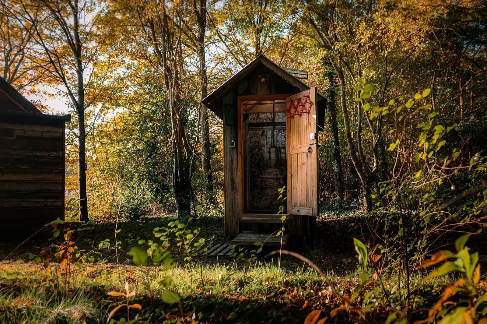 Une Tiny House unique, inspirée des maisons historiques de la colonie et des matériaux recyclés. Le gîte peut être loué toute l'année. Avec le chauffage au sol et un poêle à bois, ainsi que l'isolation écologique, vous êtes ici au bon endroit. De la cuisine, vous pouvez voir les oiseaux nicher dans les arbres, les agneaux gambader dans le pré devant le chalet. L'espace nuit peut être fermé et dispose d'un lit double (ou 2 lits simples si désiré), sous une fenêtre d'observation des étoiles. Les nuits sont sombres dans cette partie de Drenthe, donc les chances d'une expérience star sont élevées. À l'extérieur, vous pouvez profiter de votre hamac, banc de pique-nique, fauteuils inclinables et feu de camp confortable. La maison sanitaire, qui est située à côté du Pioniershuisje, offre une expérience spéciale supplémentaire. Les toilettes sont reliées à un filtre hélophyte et donnent sur la forêt. La merveilleuse douche de ciel a des lucarnes et est décorée d'un mur de photos qui donne l'impression d'être dans une serre.