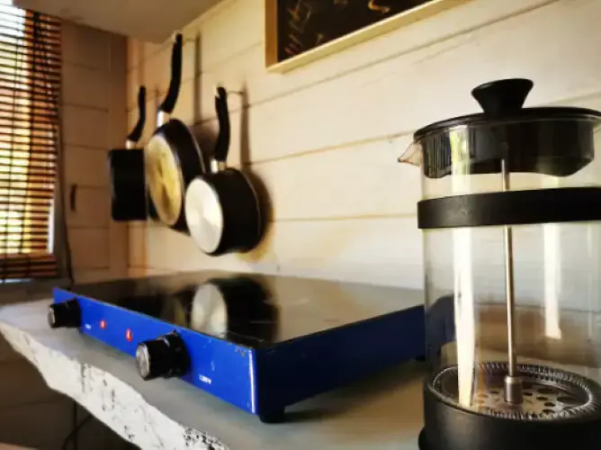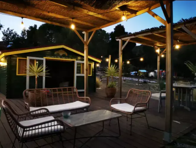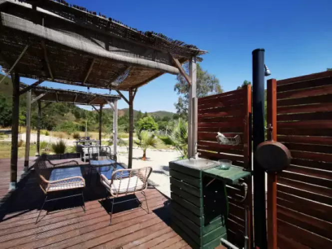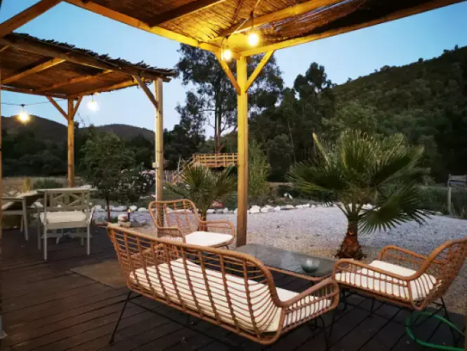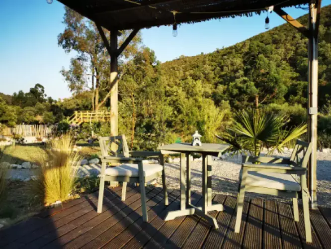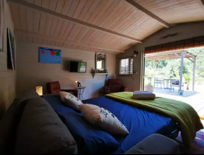 Nous vous accueillons toute l'année. Séjournez sur le terrain de Talurdo Retreat et profitez des commodités suivantes pendant votre séjour : The Pond House est une cabane de glamping avec une terrasse privée pour manger et se prélasser surplombant l'étang de Talurdo. À l'intérieur de la maison Pond, vous trouverez tout ce dont vous avez besoin pour des vacances reposantes, notamment du linge de maison, une kitchenette, des ustensiles de cuisine, un canapé-lit pour deux personnes et des sièges. A côté de votre terrasse extérieure se trouvent un lavabo et une douche solaire. Bienvenue dans votre cabane Pond House 😘 - Salle de bain extérieure commune avec douche chaude, lavabo et toilettes - Cuisine extérieure entièrement équipée - Électricité, zones d'accès WI-FI - Étang de baignade naturel - Des endroits ombragés pour s'asseoir et se détendre autour de la propriété - Blanchisserie Profitez au maximum de votre expérience avec des services supplémentaires à vendre : - Massages - Monter à cheval - Cours de yoga - Kayak - SUP Stand up paddle Remarque : Chiens interdits. Nous avons des chiens, et il est trop difficile d'intégrer de nouveaux chiens pour maintenir la paix pour les autres clients. Excuses. Nous aimons les toutous. Nos toutous vont vous adorer