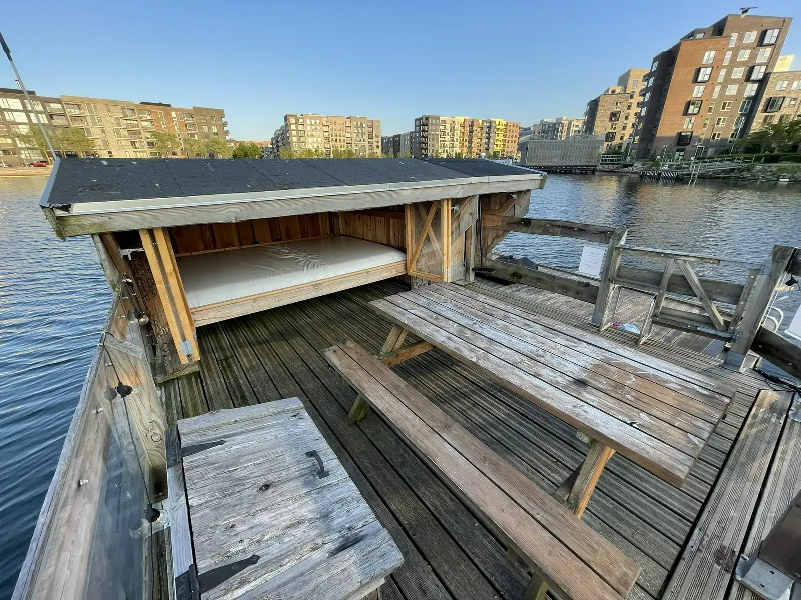 Godetevi la natura urbana blu di Copenaghen a bordo del Blue Raft, un'imbarcazione che vi permetterà di navigare da soli e di godere dell'ambiente perfetto per stare in compagnia. Un'esperienza adatta a coppie, amici e famiglie con bambini. Sul ponte sole troverete tavoli e panche, oltre a una recinzione che protegge dal vento. Nella zona notte, che può essere chiusa dall'interno, c'è spazio per quattro adulti, bagagli inclusi, ed è dotata di luci, materassini e porte trasparenti. Una barca a remi per quattro persone e due SUP sono inclusi per l'intero periodo di noleggio. Include: - barca a remi per l'intero periodo di noleggio - 2 SUP - Zona notte chiudibile e bloccabile con porte trasparenti e un ampio materasso per quattro adulti - Zona toilette separata con WC - Ampio ponte sole recintato con tavolo e panche - Lampade, lanterne e prese USB - Possibilità di prenotare più notti - Check-in alle 13:00 - Check-out alle 10:00.