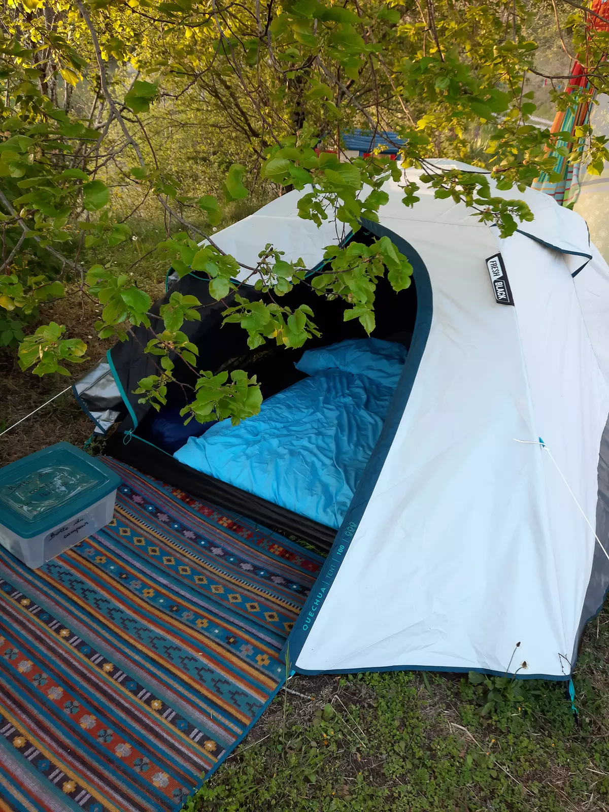 La tente se trouve dans le jardin de ma maison de campagne, près d'un hameau du village de Saint Laurent les Tours, à 15 km du gouffre de Padirac. Tente pour 1 ou 2 personnes avec matelas 140. Lit fait et linge de toilette fourni. Accès à la cuisine et à la salle de bain de la maison jusque 21H. Grand jardin panoramique avec tables, chaises... wifi...