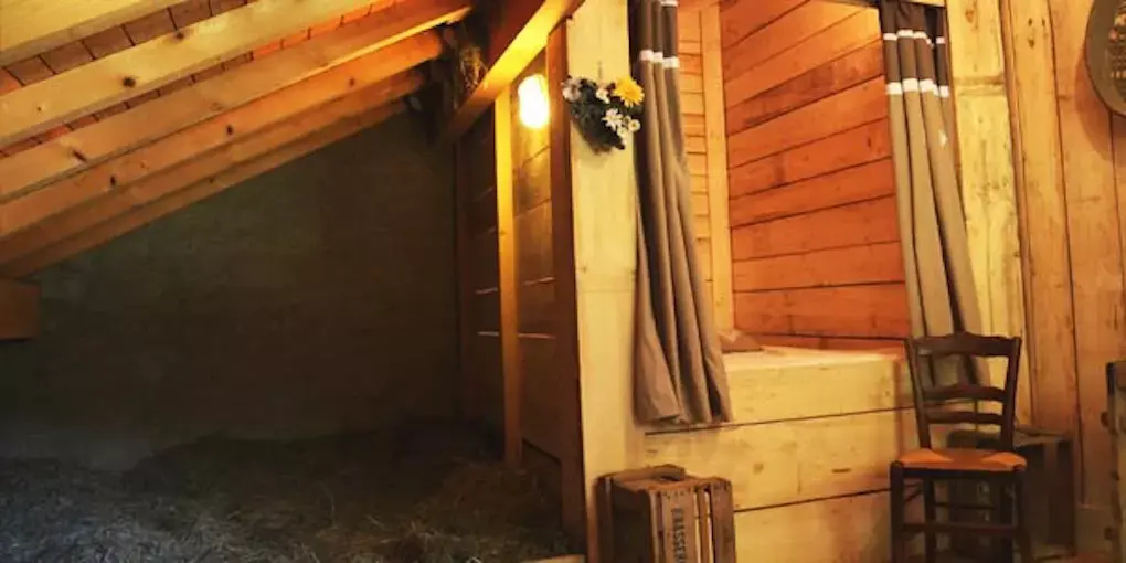 Slyngler vil elske å rulle rundt i høyet for å overnatte der! På loftet på gården har eierne faktisk installert senger av høy og tepper laget av juteposer. Som utsmykning sikrer gamle gjenstander fra gården stedets autentisitet. Ideell for store familier da stedet har plass til opptil 6 personer. Mer intimt, det lille loftet er reservert for elskere på jakt etter en naturlig natt med de mest uvanlige duftene av blomster!