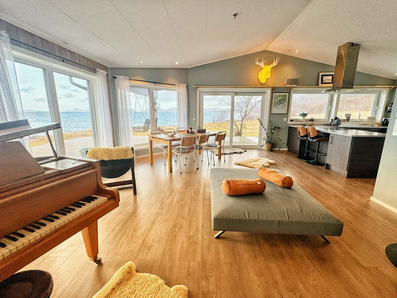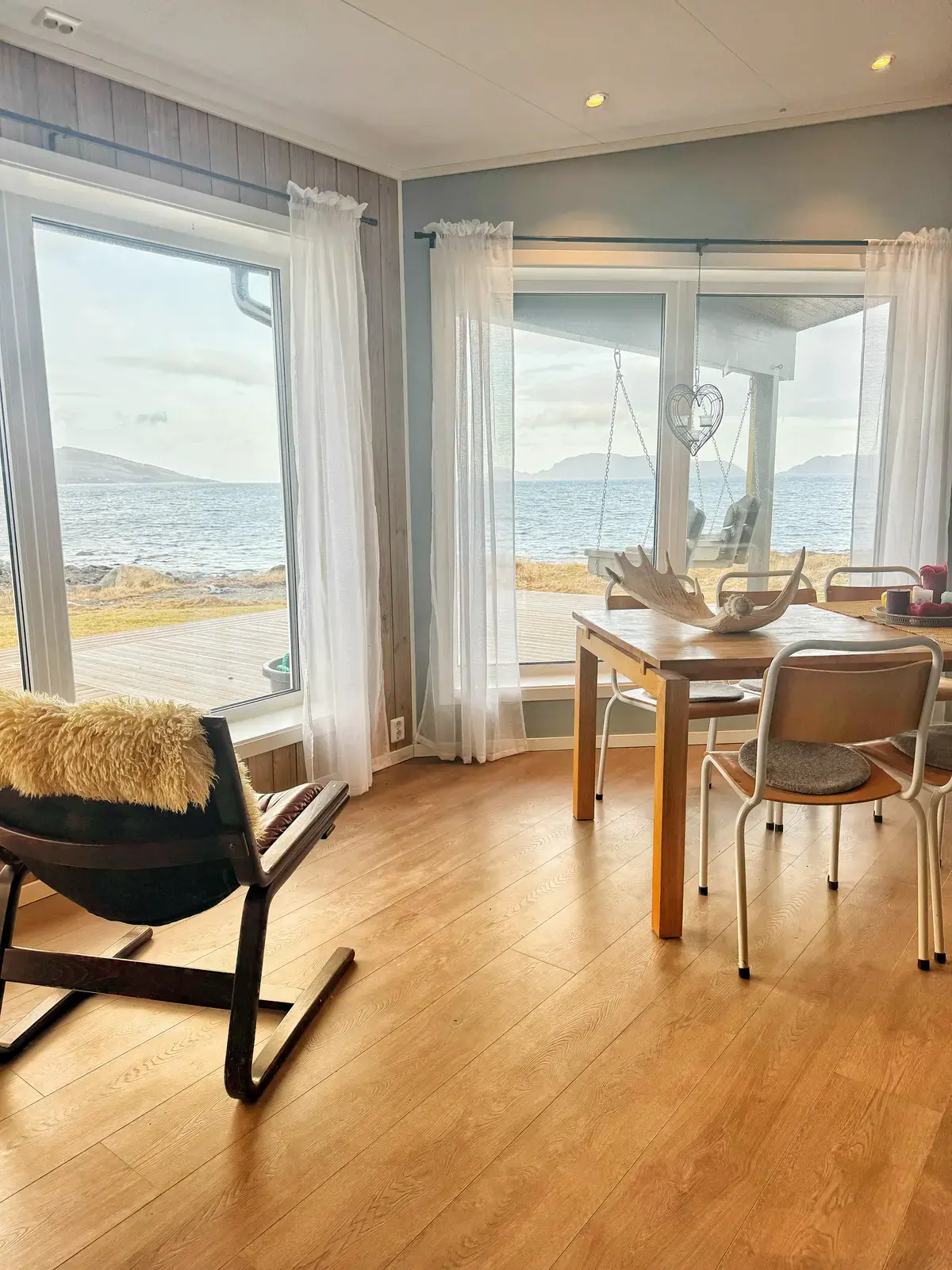 Ved det rolige vannet i Bindalsfjorden venter et moderne tilfluktssted hvor du kan oppleve det beste av norsk kystnatur. Med panoramavinduer som rammer inn fjorden og fjellene, er grensen mellom inne og ute praktisk talt visket ut, mens den åpne planløsningen skaper en unik følelse av rom og frihet. Innendørs vil du bli møtt av en gjennomtenkt planløsning hvor moderne komfort møter tidløs design. Store vinduer slipper inn naturens eget lys og lar deg nyte årstidenes skiftende atmosfære fra husets varme atmosfære. Den 200 kvadratmeter store terrassen blir en naturlig forlengelse av hjemmet, hvor du kan nyte måltider under stjernene eller bare slappe av til lyden av bølgene. Fra din egen hage har du direkte tilgang til havet, perfekt for en morgensvømming eller en improvisert fisketur.