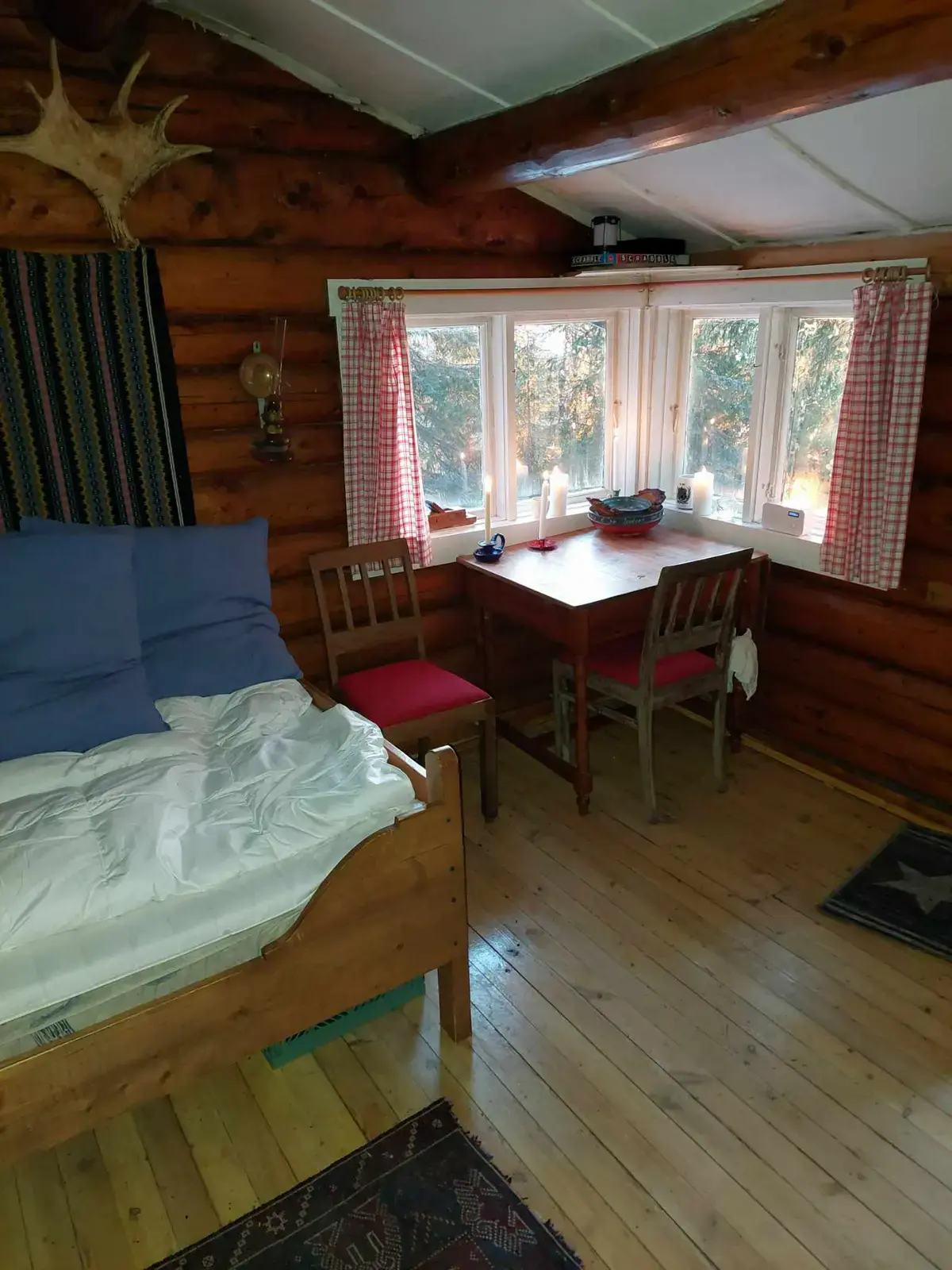 Velkommen til en ekte hytteopplevelse i Krokkleiva – en original tømmerhytte som ligger fredelig til midt i naturen, bare rundt 40 minutter fra Oslo. Her kan du senke skuldrene, lytte til fuglesangen og nyte stillheten langt unna hverdagslivet. Hytten byr på en enkel, men sjarmerende standard der naturen og roen står i sentrum. Det er plass til flere overnattingsgjester, med en dobbeltseng som har dyne, samt to feltsenger uten dyner – så husk å ta med sovepose hvis du planlegger å bruke disse. Dette gjør stedet perfekt for par, små grupper eller familier som ønsker å bo nært naturen og ikke har noe imot en litt mer rustikk overnatting. For å komme til hytten kjører du helt fram til Retthelltjern, der du passerer en bom som du får kode til ved booking. Fra parkeringen går du omtrent et kvarter langs en hyggelig tursti inn i skogen. Turen inn er en del av opplevelsen, og det anbefales å bruke gode sko – særlig om det har vært vått vær. Når du kommer frem, venter et enkelt, koselig opphold med fokus på ro, natur og nærvær. Dette er ikke stedet for luksus, men for deg som ønsker å koble av og finne tilbake til det enkle. Det er lurt å ta med sovepose til feltsengene, samt det du trenger av mat, drikke og eventuelt ved, avhengig av årstid. Mobildekningen kan variere, så planlegg gjerne litt i forkant og nyt det som kanskje er den største luksusen av alle – stillheten.