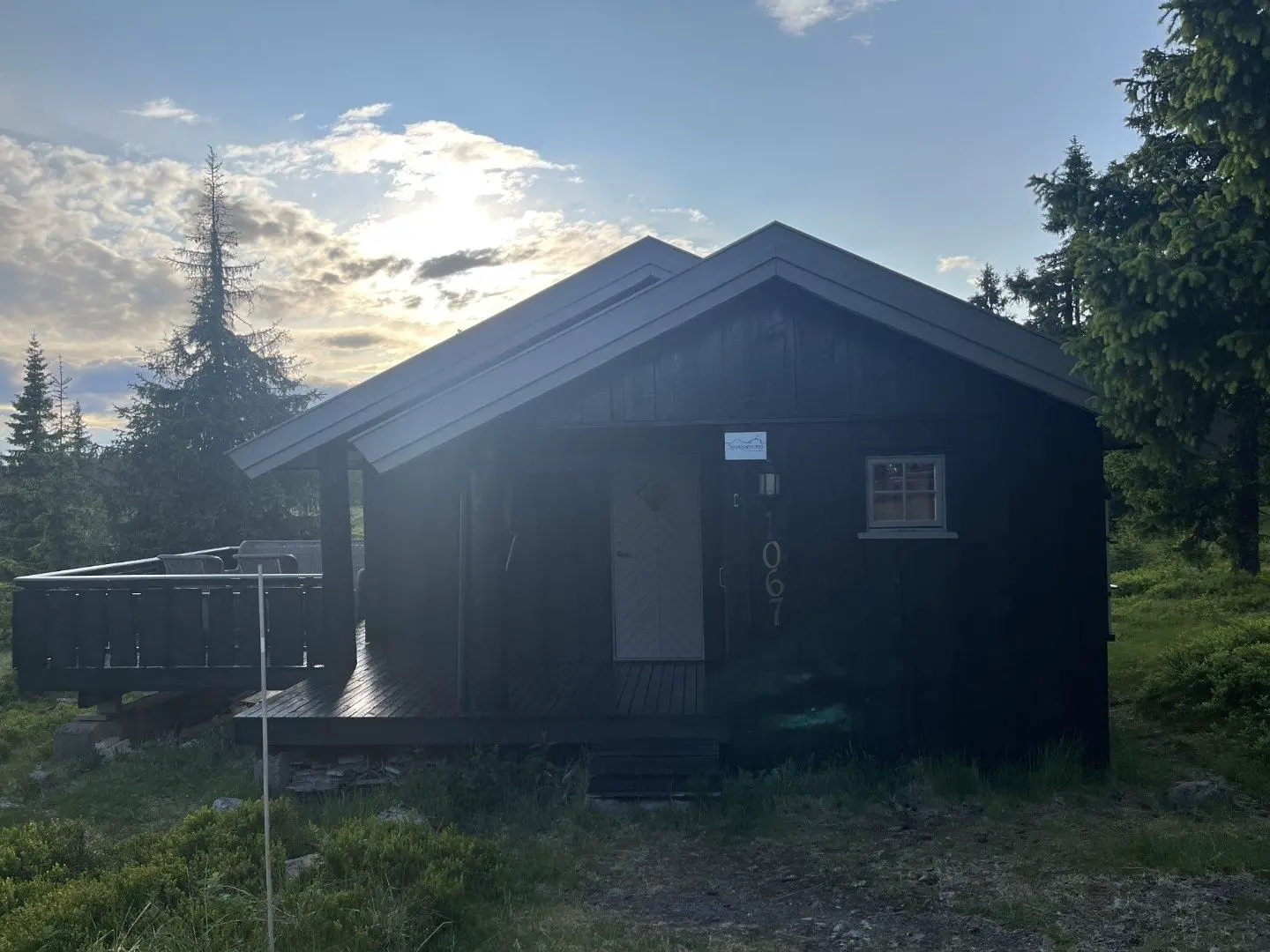 Hytta har to soverom og har plass til opptil fem gjester. Soverom 1 har en dobbeltseng (180 cm), mens soverom 2 har en familiekøyeseng (150 cm/75 cm), noe som gjør den godt egnet for både voksne og barn. Innvendig finner du praktiske bekvemmeligheter som oppvaskmaskin, innlagt vann og strøm, noe som gjør hverdagen enkel selv i avsidesliggende omgivelser. Kjæledyr er også velkomne, så du kan ta med din firbeinte følge.