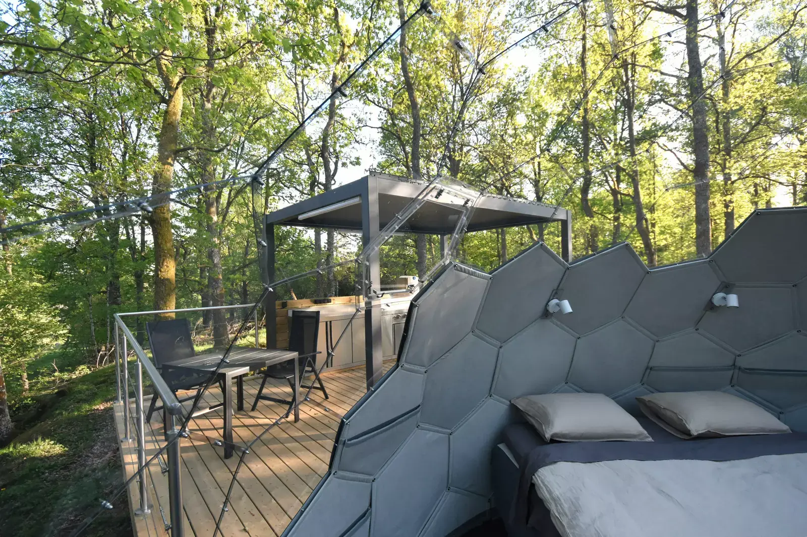 Velkommen til Drakabergets glampingdome! Tilbring natten på en enkel og glamorøs måte! Gå opp bakken – og bli overrasket av vår glampingdome som venter på deg stolt buet mellom trær og mosegrodde steiner. Du kommer til din personlige glampingoase i løpet av få minutter – på en tur som tar deg gjennom det mektige smålandske landskapet og bort fra hverdagslivet. Glampingdomen står i en åsside på en treterrasse hvor det også er et deilig utekjøkken i en pergola og en sittegruppe med bord og stoler. Foran domen, og rett ved siden av utekjøkkenet, er det en fin campingplass og bålplass med ved. Glampingdomens utekjøkken er utstyrt med servise og de viktigste redskapene du trenger for å lage et enkelt måltid. Du kan lage maten på gasskomfyren – eller over åpen ild (grillrist, panne og kjele er inkludert). Du oppbevarer ingrediensene kalde i en stor elektrisk kjøler. Eller du kan gjøre det ekstra komfortabelt for deg selv og bestille et matlagingssett samt drikke og dessert fra oss. Glamping-kuppelen er sjenerøse 17 kvadratmeter og 2,5 m høy. Utformingen av skogsrommet ditt gjør at inne og ute smelter sammen på magisk vis. Du har en fantastisk panoramautsikt over de vakre omgivelsene. Samtidig kan du nyte absolutt privatliv takket være kuppelens design og uhindrede, forhøyede beliggenhet. Kuppelen er koblet til strømnettet, og mobildekning er tilgjengelig. 30 liter vann leveres per dag. I rimelig avstand fra kuppelen finner du ditt personlige utedo. (Du kan dusje (og bruke et vanlig toalett) noen få minutters gange unna.) Opplev en unik overnatting og nyt luksusen av enkelhet på Drakaberget! Frokost (med mange hjemmedyrkede og økologiske produkter), sengetøy, håndklær og sluttrengjøring samt ved er inkludert. Matlagingssett kan bestilles direkte hos oss. "Kun voksne": I glampingdomen ønsker vi velkommen opptil 2 personer som er minst 22 år gamle. Unge gjester er velkomne fra 15 år i følge med en voksen. Dessverre er det ikke tillatt å ta med kjæledyr til Drakabergets glampingdome. Vi bor bare noen få minutters gange unna og er tilgjengelige ved behov.