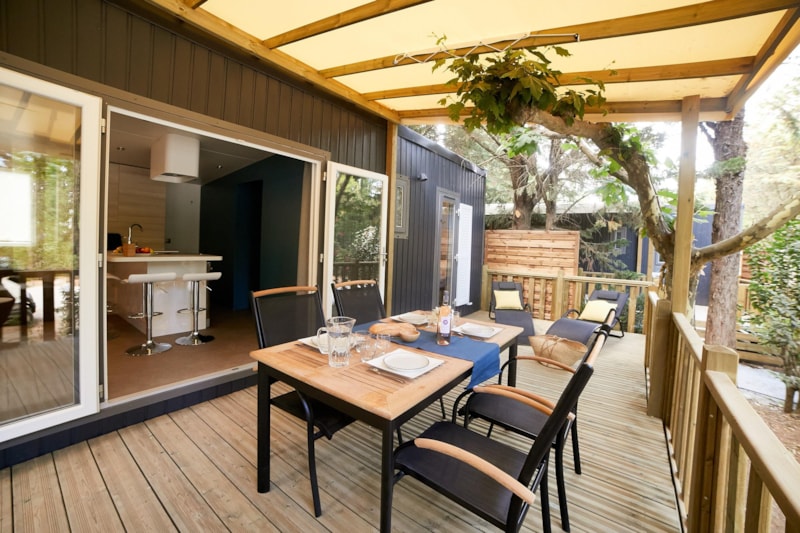 Plusieurs gammes d'hébergements vous sont proposées : les « Klassic », mobil-homes traditionnels, les "Konfort" et les « Kosy », des mobile homes plus récents à tendance écologique. Enfin, les vacanciers qui le souhaitent peuvent également séjourner dans de superbes lodges « Kabane » sur pilotis. De véritables hébergements glamping implantés sur des emplacements privilégiés. Tous les hébergements sont climatisés, entièrement équipés, disposent d’une télévision ainsi que d’une terrasse avec mobilier de jardin pour profiter pleinement du climat méditerranéen et des douces soirées d’été. Et pour les amoureux de camping plus « traditionnel », des emplacements tentes et camping-car de 80 à 180m² sont également à disposition.