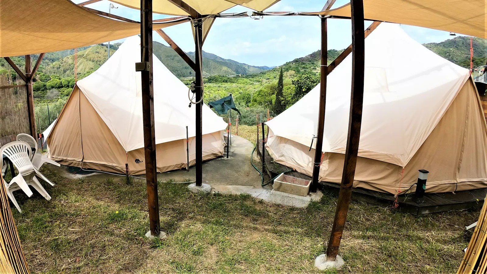 In un oasi verde, a 2 km dalle Gole dell'Alcantara disponiamo di sistemazioni pronte con bagno esclusivo e tutti i servizi comuni compresi nel campeggio :