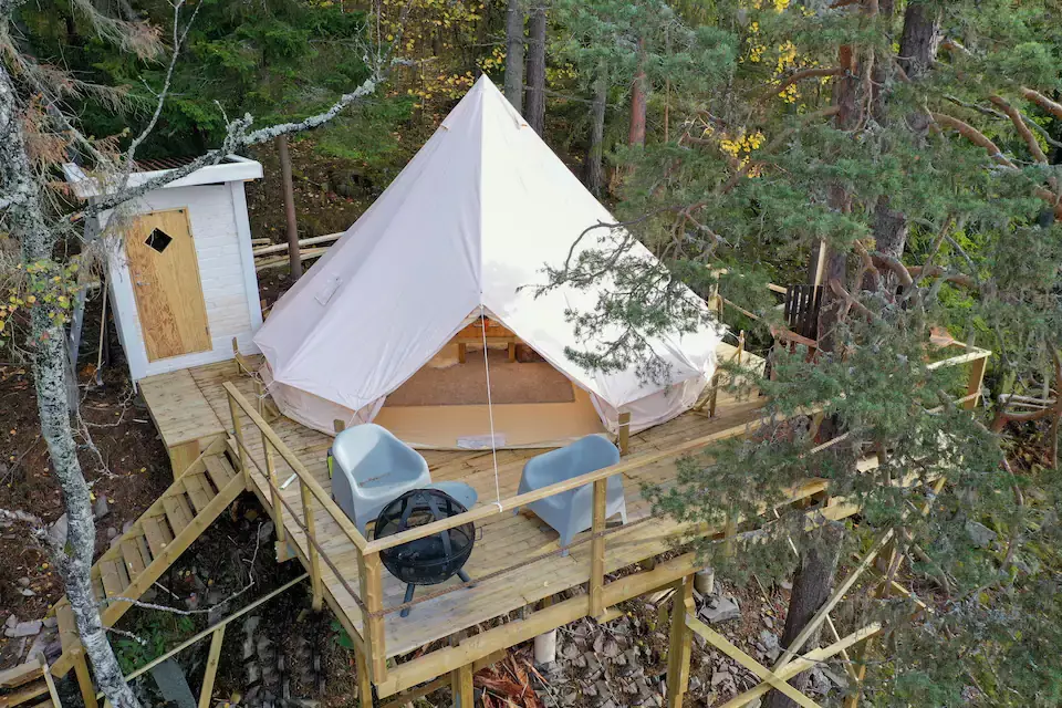 Stedet er ganske høyt oppe i åsen blant skogen. Fuglene kvitrer og hakkespetten banker i hule trær.