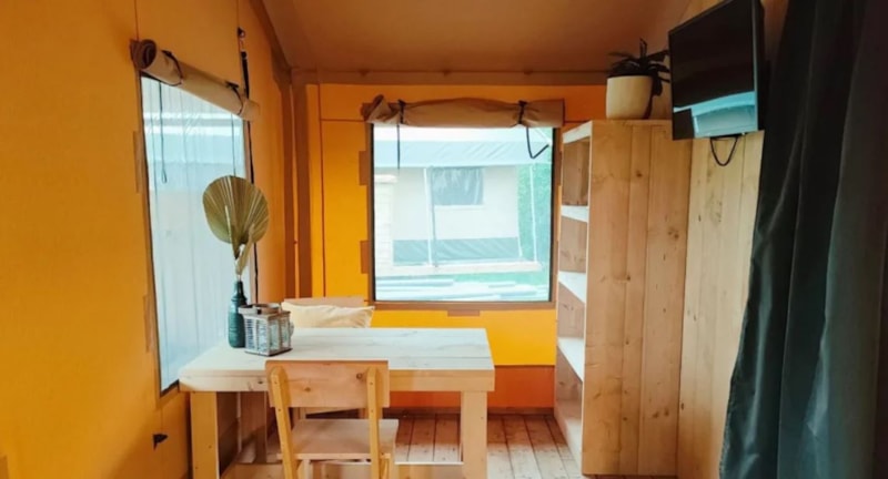 Nestled in the picturesque landscapes of Noord-Scharwoude, NL, our enchanting nature retreat offers a captivating blend of adventure and tranquility perfect for outdoor getaways. Choose from a variety of cozy cabins, including the "Desert" and "Dreamer," each designed to offer unique experiences for 4 to 5 guests, and the "Kompact" and "Sunshine," ideal for more intimate, two-person stays. For larger groups, the "Country" and "Veranda" chalets provide ample space and comfort for up to 6 guests, with the "Unique" and "Exclusif" standing out for those seeking a more private escape. Each chalet boasts a welcoming living space designed for relaxation, complete with a comfortable seating area and a kitchen perfect for family meals.