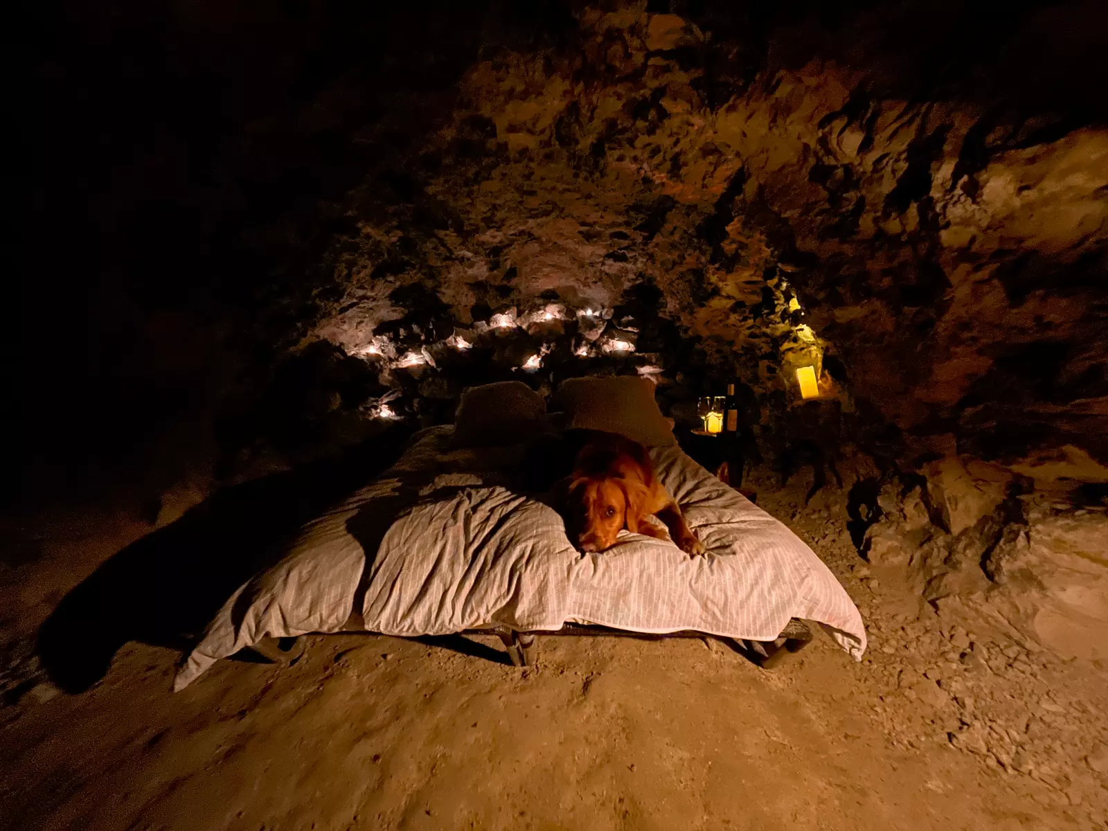 Atmosfære mættet hule i fredet kalkgrube langt under jorden i naturskøn skov.
