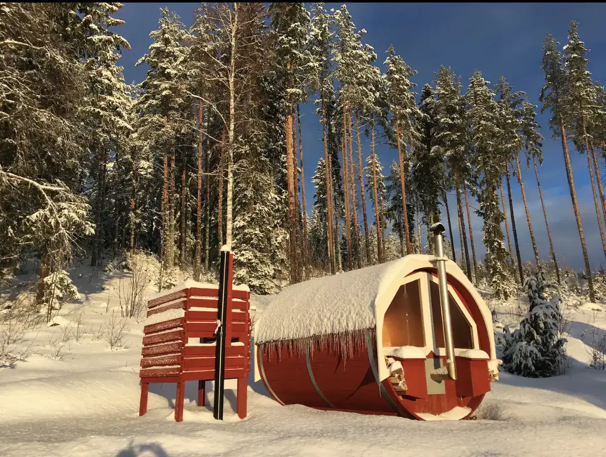 Tillbringa lite kvalitet och mysig tid i naturen med din kära, mitt i en skog, med en magnifik utsikt över sjön. Wigwamen är 30m2 och har en 160x200 riktig säng med sängkläder och extra filtar. Den värms upp med en vedspis för fräscha nätter. Du kan laga mat på en utomhus eldstad, vi tillhandahåller grytor, stekpannor och bestick, och även ved och vatten från vår källa. Det finns torrtoaletter och en extern dusch. Du har fri tillgång till sjön, kanoter och gratis sessioner i bastun. En frukostkorg ingår. Du kan beställa en middagskorg (coleslaw, korv ... som du lagar på elden, eller kallt kött vid eldförbud, potatis, efterrätt)