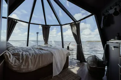 Stig ombord i en igloo och lev så nära naturen som möjligt – med Ringsjöns lugna vatten, skogen och fåglarna som dina närmaste följeslagare. Dessa igloer är klimatsmarta, flytande glaskupler för två personer, där du sover direkt på sjön (eller mycket nära stranden), omgiven av skog och Skånes vackra öppna landskap – drygt en timme från Köpenhamn och cirka 45 minuter från Malmö.