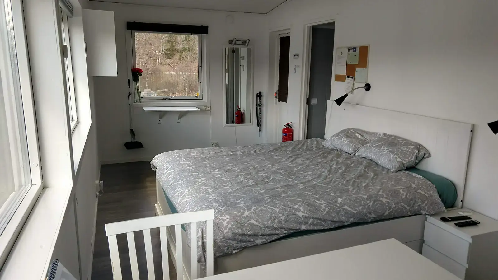 Bo i en privat lägenhet vid stranden av en sjö mellan Göteborg och Landvetter flygplats. Perfekt som mellanlandning för affärsresenärer eller en romantisk weekend för par. Det finns fem boenden: Évika 1, 2, 3, 4 och 5, alla belägna på privat mark intill en stor sjö och omgiven av tallskogar, underbart lugnt och avkopplande. - SOVRUM med två sängar i tvåbädds- eller dubbelkonfiguration, enligt gästernas önskemål. - VARDAGSRUM med bäddsoffa för två, smart-tv och fönster mot trädgården. - KÖK med kyl, kokplattor, mikrougn, brödrost, porslin och bestick, minidiskmaskin, viktiga ingredienser och kryddor, kaffebryggare, bord för fyra. - BADRUM med WC, handfat, bred duschkabin, hårtork, personliga handdukar och akuta toalettartiklar. - UTANFÖR trädgårdsbord och stolar för fyra. - Gratis 60Mb/sek wi-fi i stugan, i trädgården och på sjön. - Gratis parkering på privat mark.