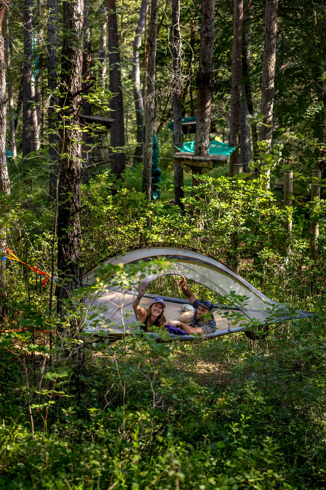 Tentes suspendues au cœur d'un parc accrobranche au bord du Verdon.